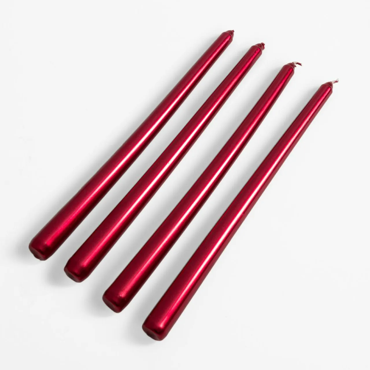 W komplecie 4 sztuki świec w czerwonym kolorze o wysokości 30 cm.