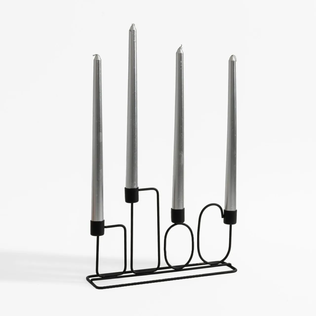 W komplecie 4 sztuki świec w srebrnym kolorze o wysokości 30 cm.