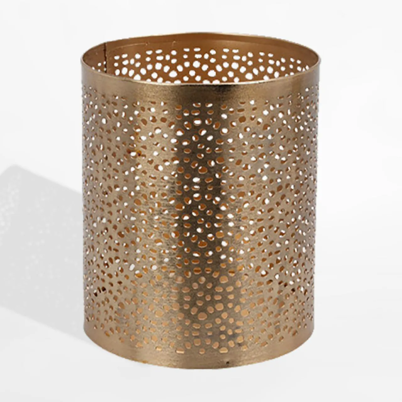Elegancki świecznik w złotym kolorze, o wysokości 13 cm, to doskonały dodatek do każdego wnętrza, dodający mu wyjątkowego blasku i elegancji. Idealny na romantyczne wieczory, świąteczne dekoracje czy stylowe przyjęcia, świecznik wykonany z metalu zapewnia trwałość i piękny wygląd. Ciekawe zdobienie tworzy efektowne kompozycje świetlne.