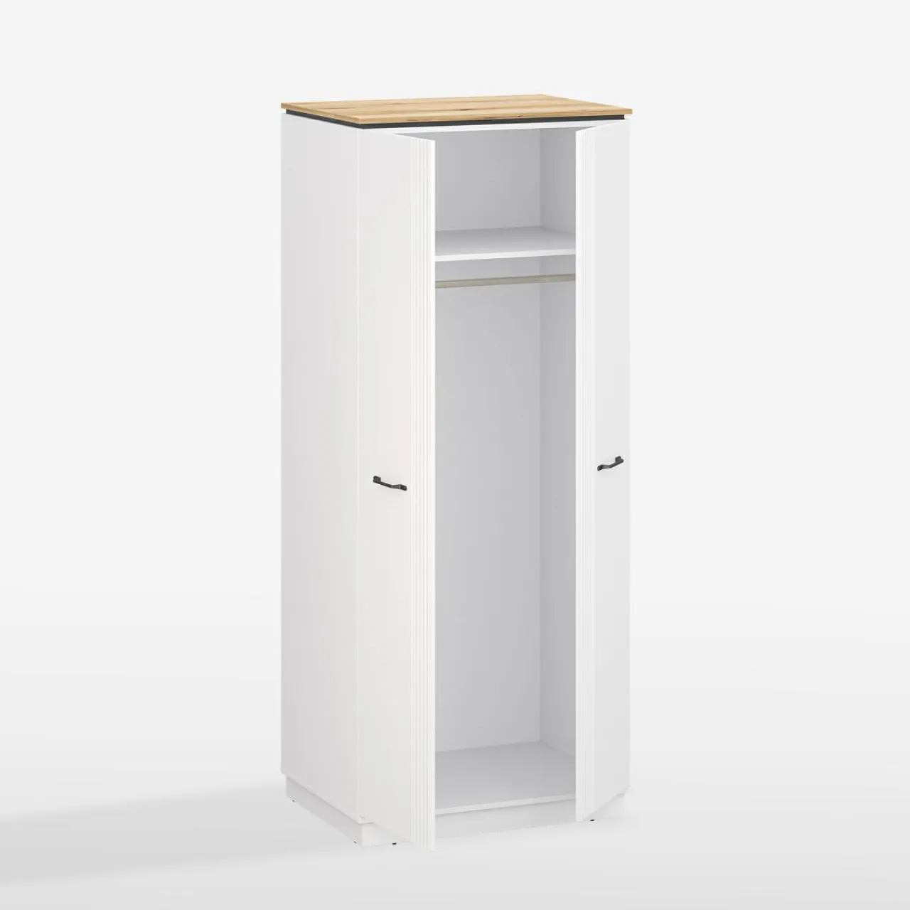 W szafie VELUTTO łatwo zachowasz porządek. Podzielona na część z drążkiem i półkę oddzielisz odzież wierzchnią od tej mniej wykorzystywanej.
