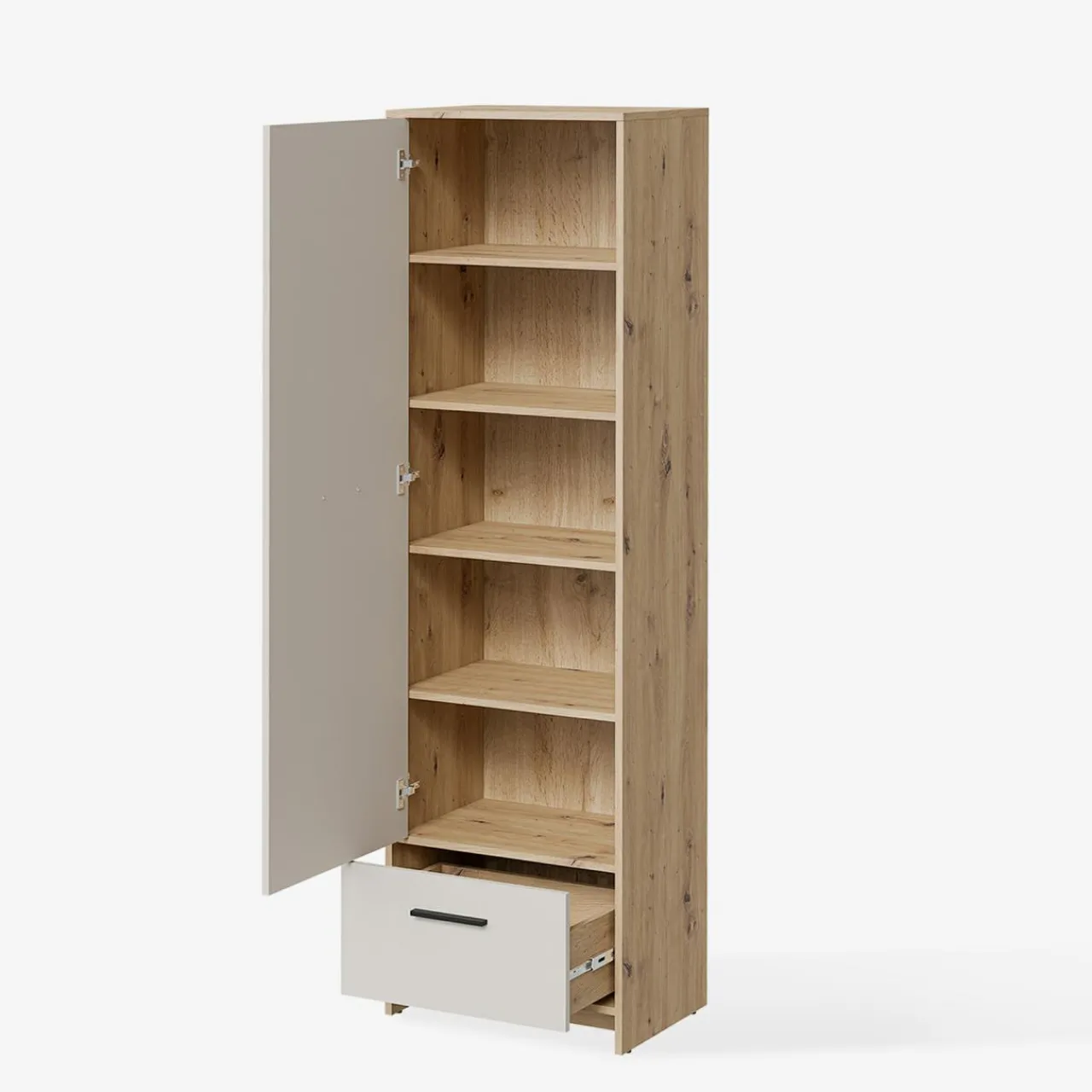 - Po otwarciu drzwi czeka Cię sporo możliwości – bieliznę czy pościel umieścisz na jednej z 4 półek.