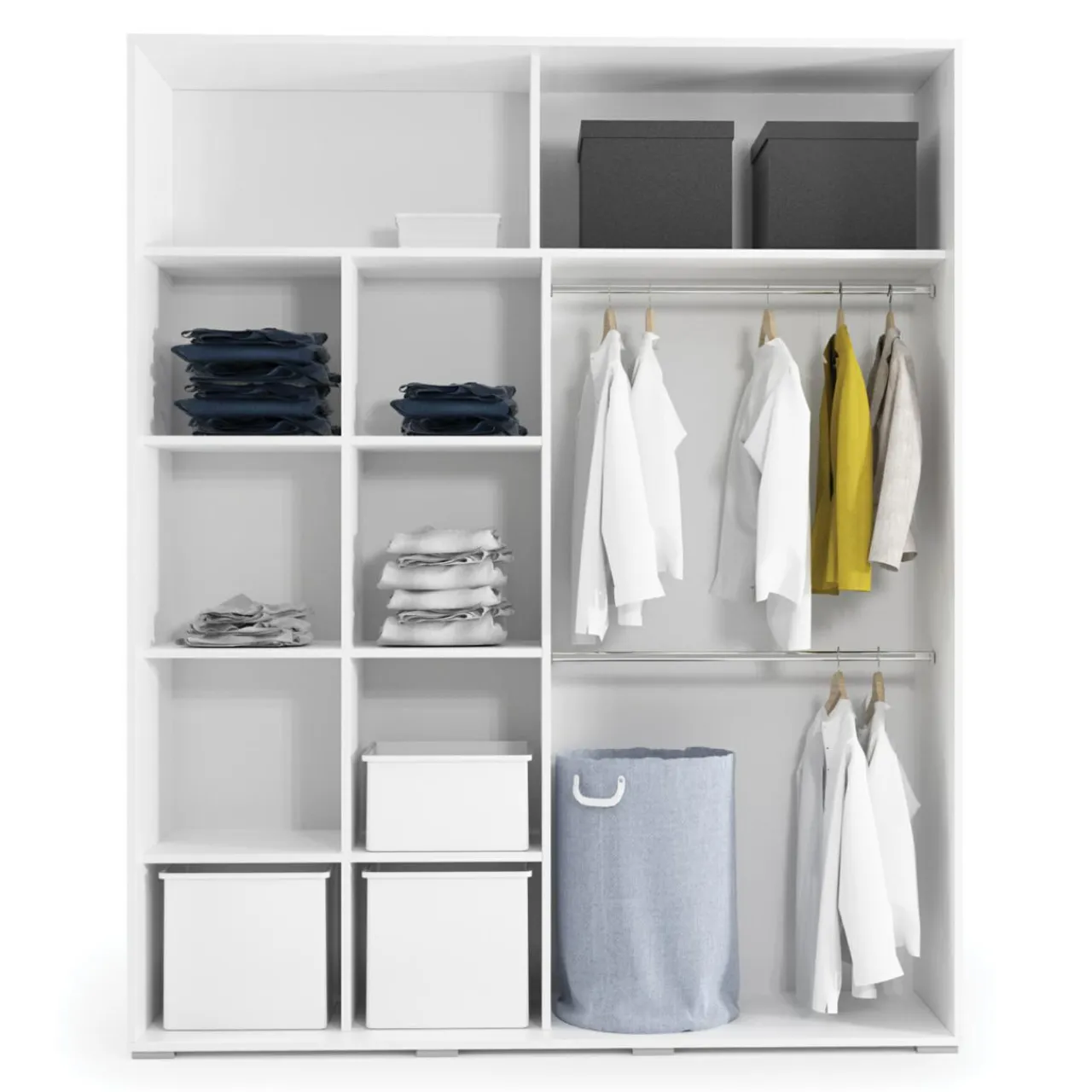- W takiej szafie sprawdzi się do przechowywania ubrań, dodatków, torebek, butów, zapasowej pościeli i koców.