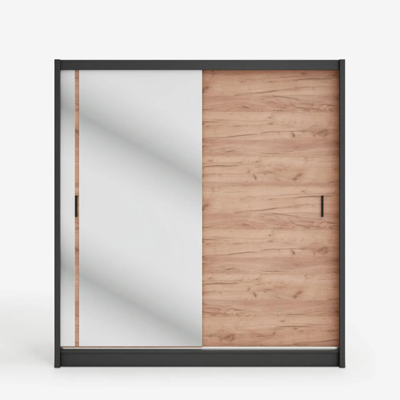 Szafa MALI z przesuwnymi drzwiami to mebel przeznaczony do sypialni, przedpokoju lub garderoby. Szeroka na ponad 200 centymetrów, zabuduje większe pomieszczenia.