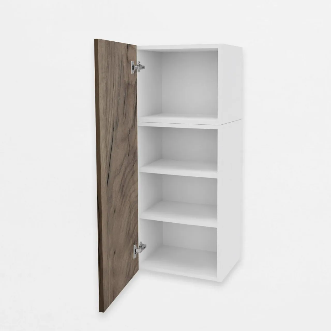 - Wysoka na 108 cm bryła mebla jest łączona z 2 korpusów i podzielona na 4 wnęki. Pozwala na intuicyjnie rozmieszczone naczyń oraz produktów żywnościowych.