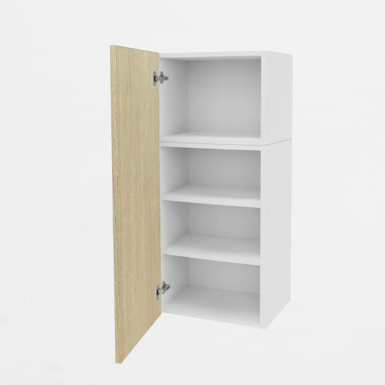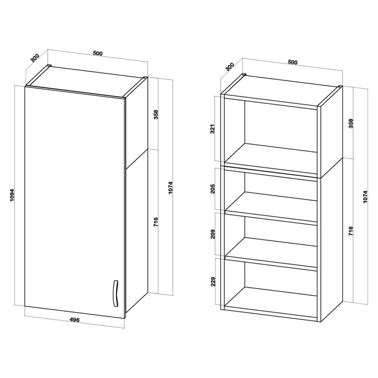 - Wysoka na 108 cm bryła mebla jest łączona z 2 korpusów i podzielona na 4 wnęki. Pozwala na intuicyjnie rozmieszczone naczyń oraz produktów żywnościowych.