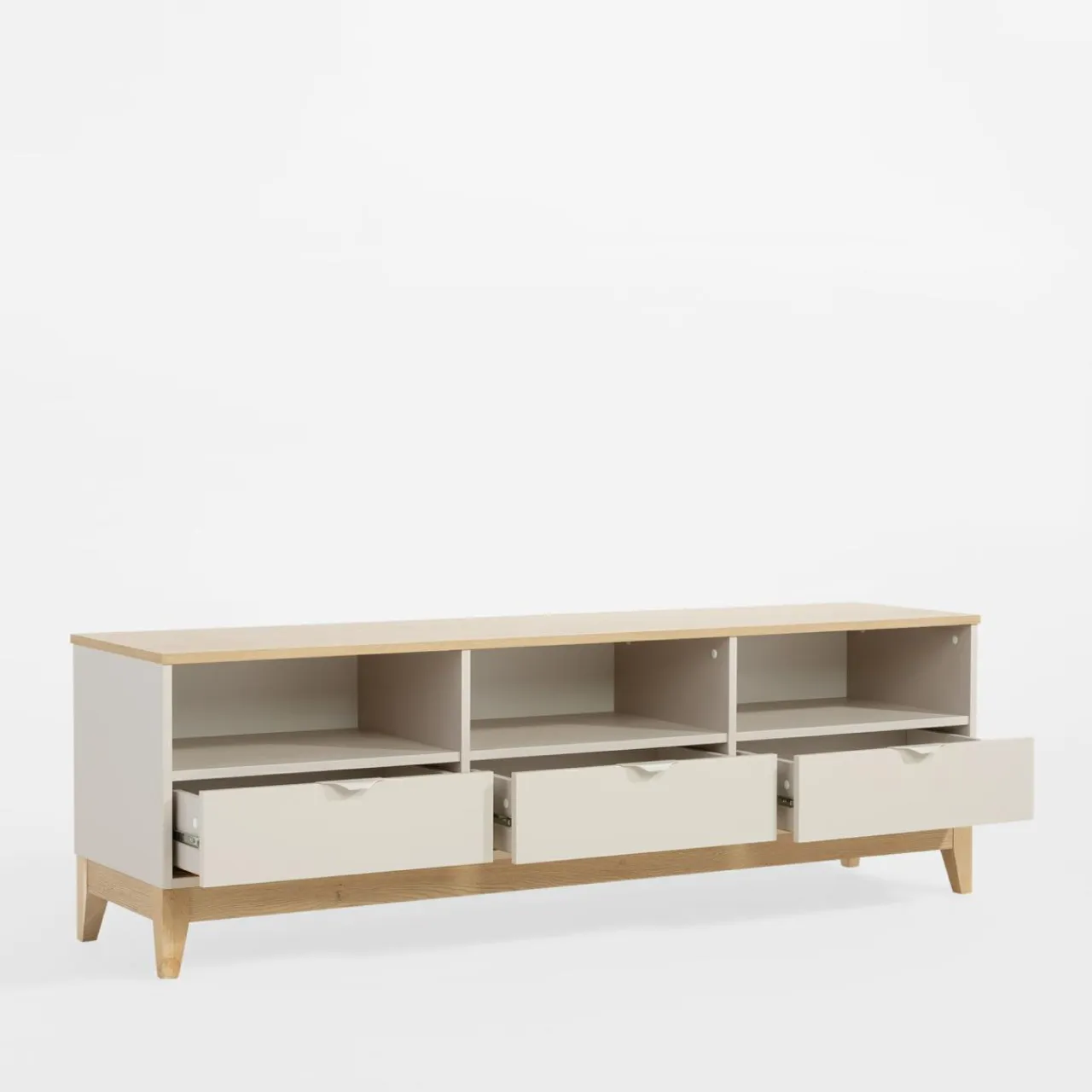 - 3 pojemne szuflady – zapewniają miejsce na drobne akcesoria, takie jak piloty, kable czy gry, pomagając utrzymać porządek i umożliwiając łatwy dostęp do niezbędnych przedmiotów.