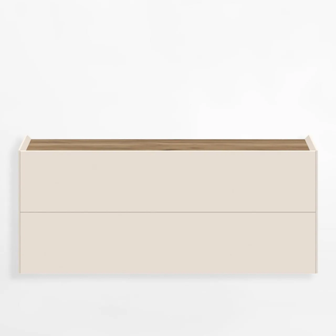 Kolekcja SKY45 to nowoczesne meble w kolorze kaszmiru z ciepłymi akcentami dębu tobacco. Prosta forma, starannie dopracowane detale i opcjonalne oświetlenie LED sprawiają, że idealnie pasują do współczesnych wnętrz. System cichego domyku, pojemne szuflady i wysokie nóżki zapewniają wygodę użytkowania i łatwość utrzymania porządku.