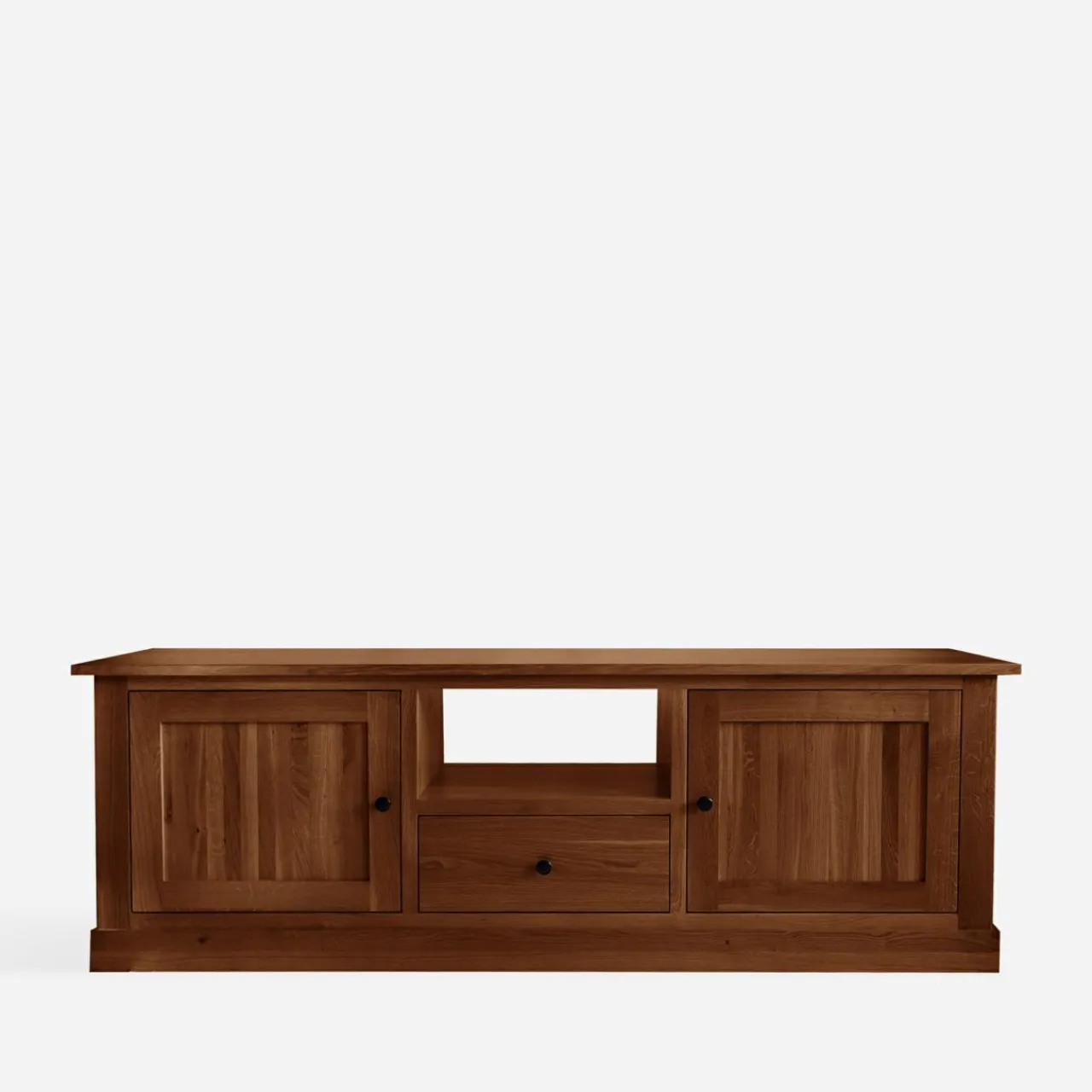 Szafka RTV STELLA to elegancki mebel z litego drewna w odcieniu dąb koniakowy. Wyposażona w pojemną przestrzeń do przechowywania i przestronny blat, spełni oczekiwania zarówno miłośników klasyki, jak i praktycznych aranżacji.