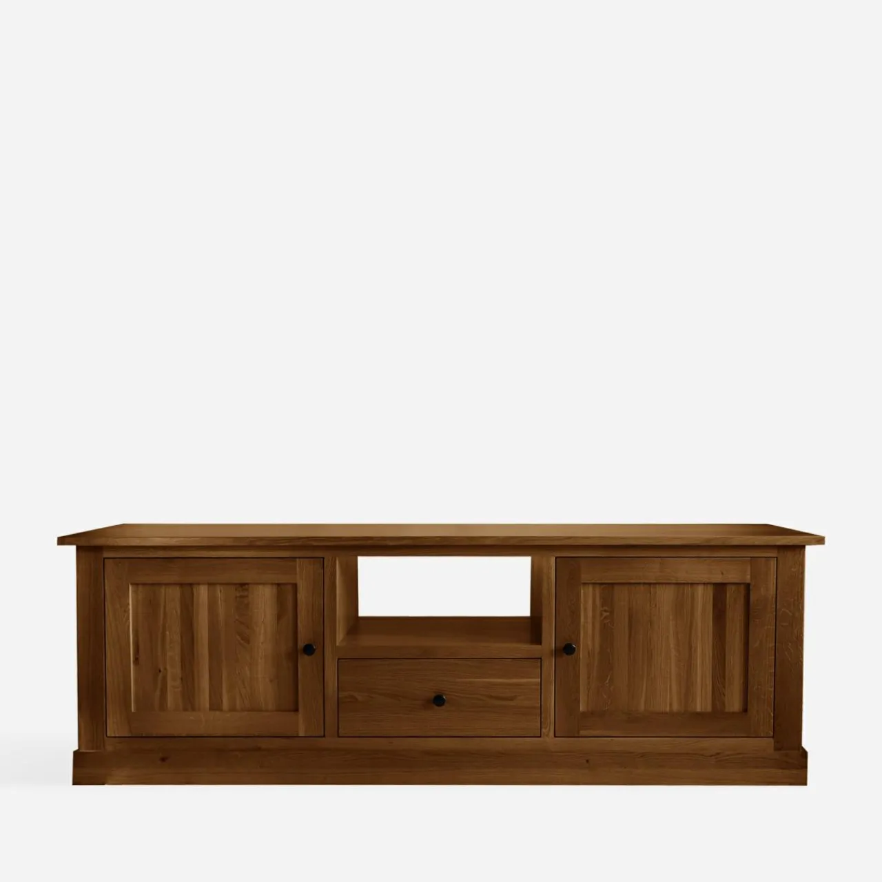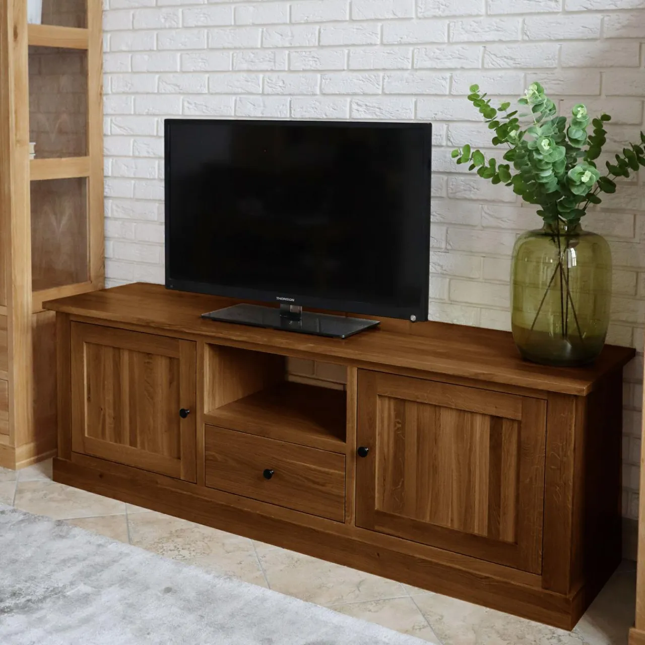 Szafka RTV STELLA to elegancki mebel z litego drewna w odcieniu dąb rustykalny. Wyposażona w pojemną przestrzeń do przechowywania i przestronny blat, spełni oczekiwania zarówno miłośników klasyki, jak i praktycznych aranżacji.
