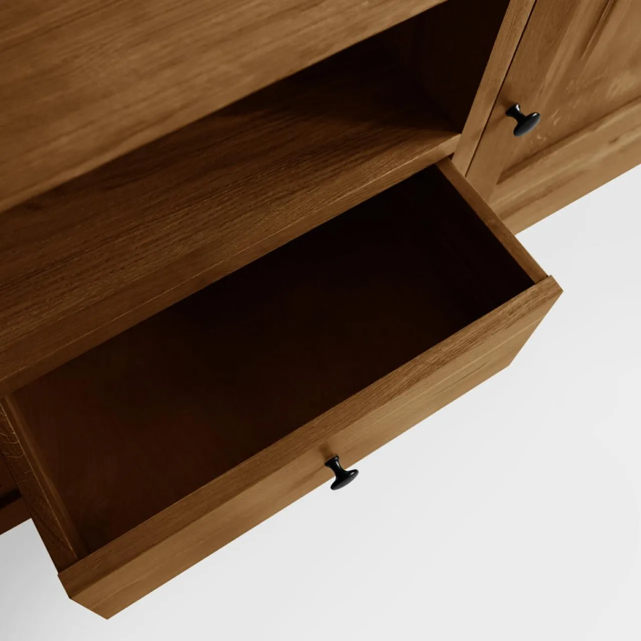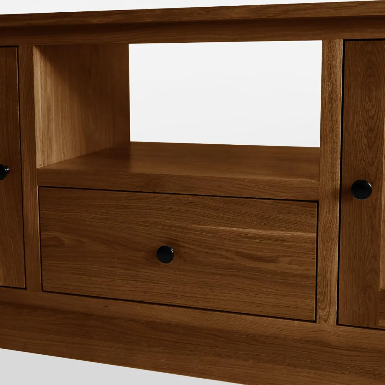 - Szeroki blat (175 cm) – umożliwia wygodne ustawienie telewizora oraz dekoracji, takich jak ramki, świece czy roślin.