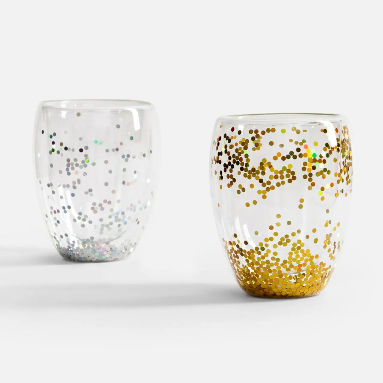 inny Szklanka z podwójną ścianką ze srebrnym konfetti 350 ml