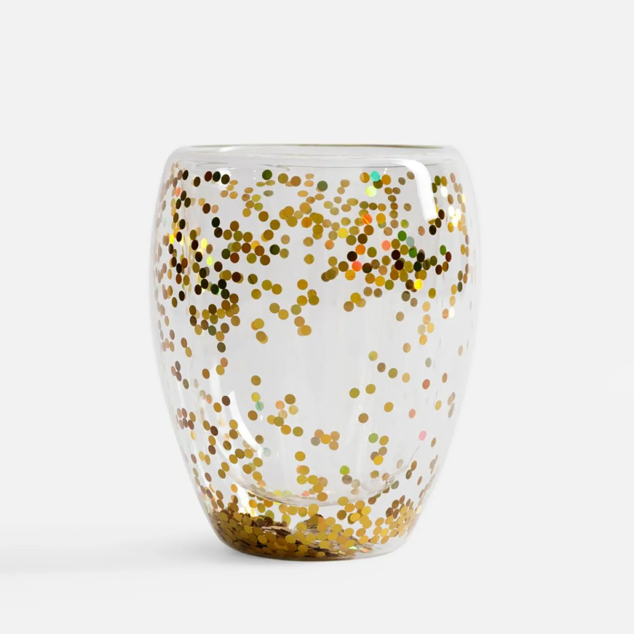 inny Szklanka z podwójną ścianką ze złotym konfetti 350 ml