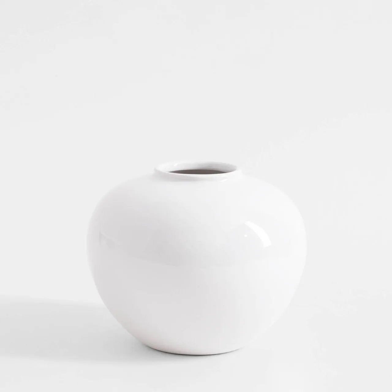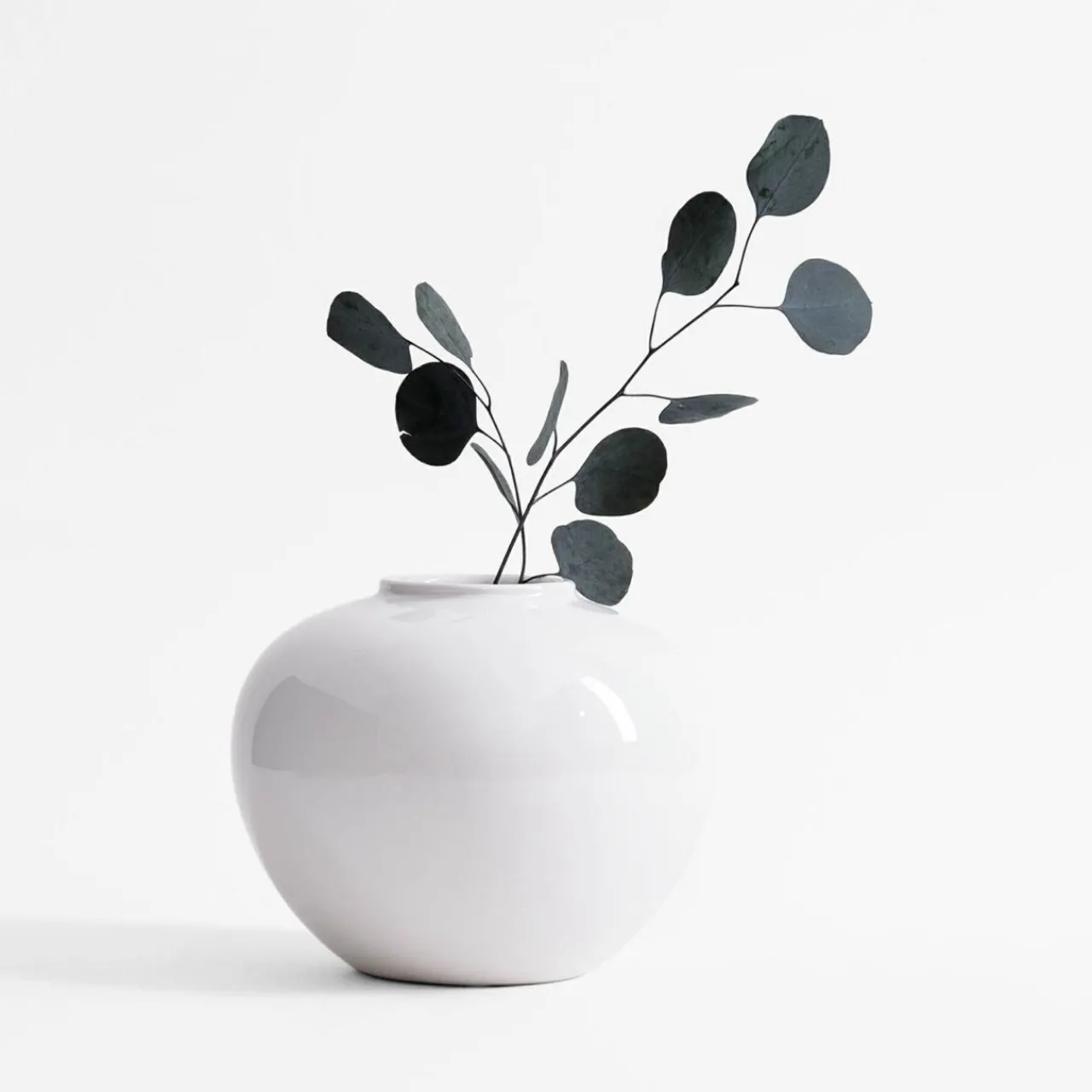 Biały wazon wyróżnia się szeroką i krągłą budową. Włożysz do niego cały bukiet ulubionych kwiatów lub pozostawisz dekoracją.