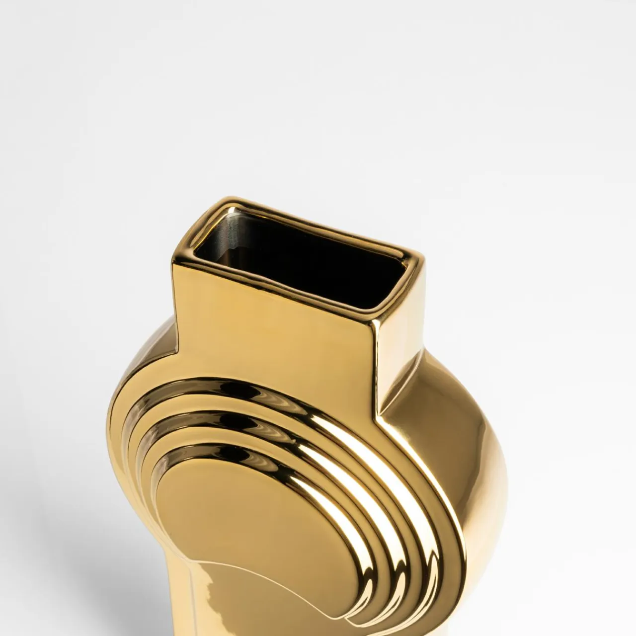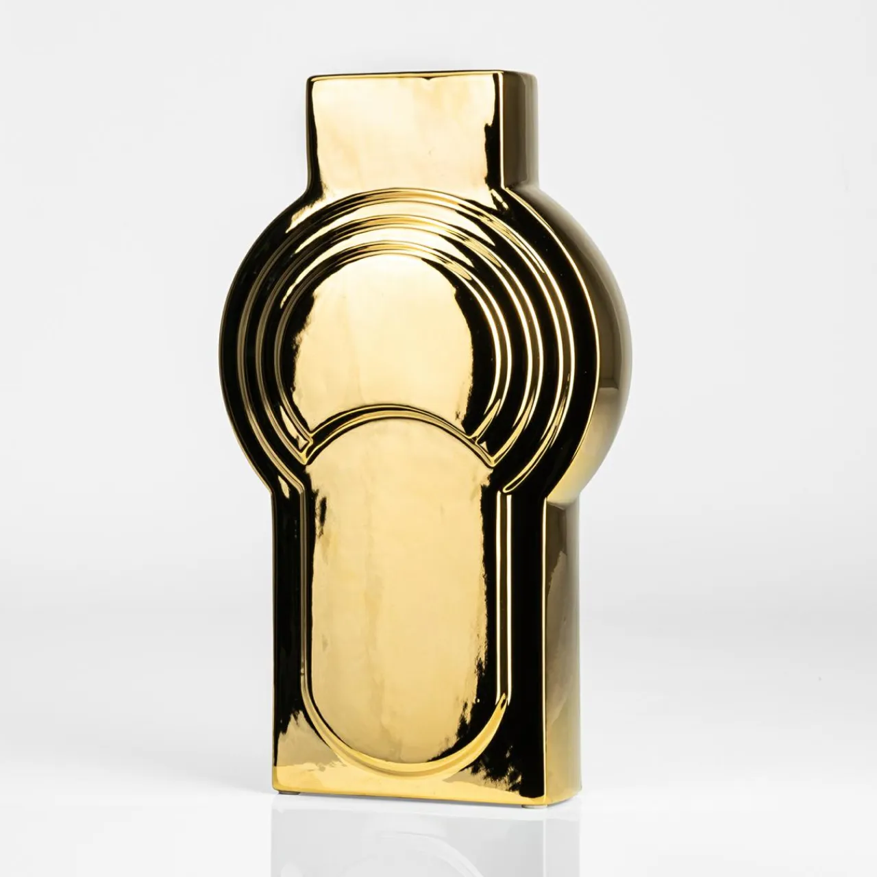Chcesz dodać Twojej przestrzeni nowego charakteru? Zacznij od dodatków! Wazon z geometrycznym zdobieniem i złotym wykończeniem wpasuje się w aranżacje w stylu glamour, stanowiąc ich centralny punkt.