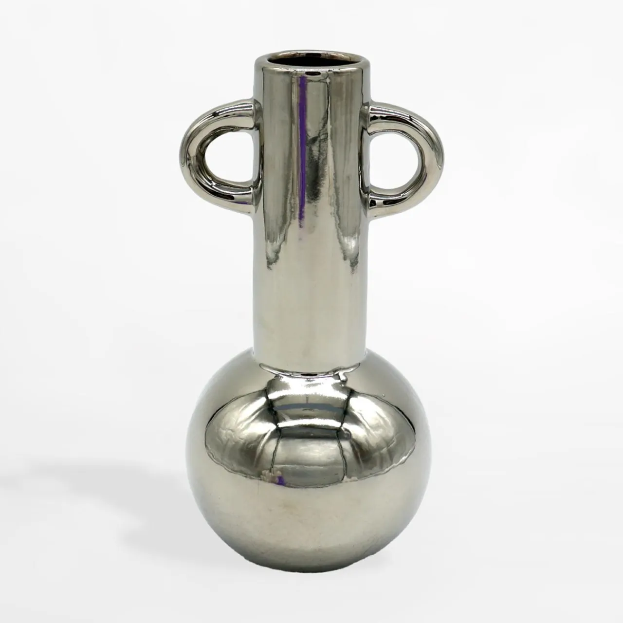 Wazon w kształcie dzbana harmonizuje z wnętrzami w stylu glamour, nowoczesnym i minimalistycznym. Prosty design wazonu prezentuje się elegancko, a subtelny blask srebrnej powłoki zadba o rozjaśnienie aranżacji.