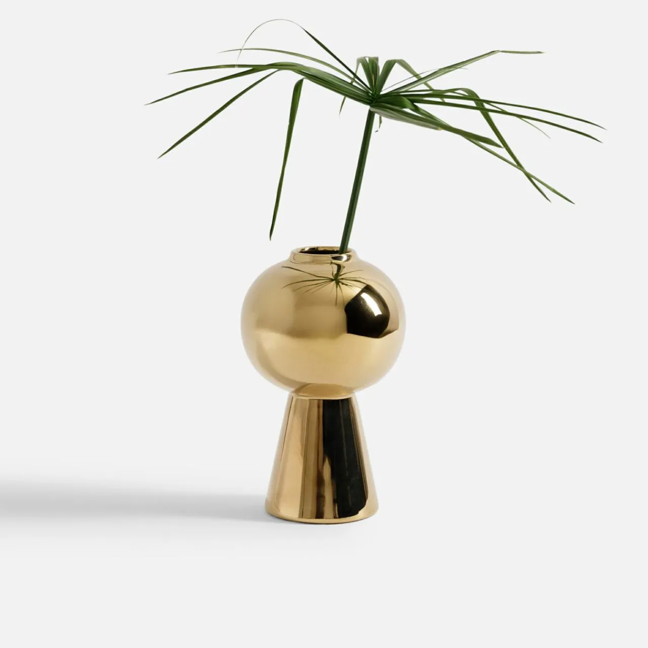 Ten złoty wazon wyróżnia się nowoczesnym designem i eleganckim połyskiem, idealnym do stylowych wnętrz.