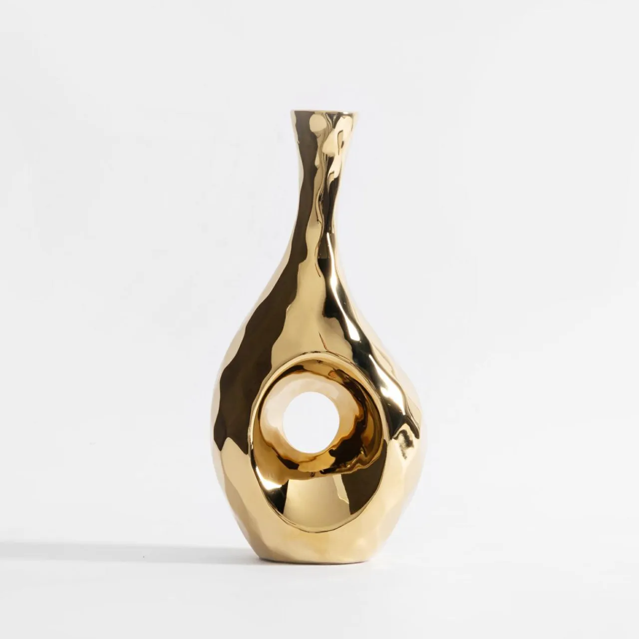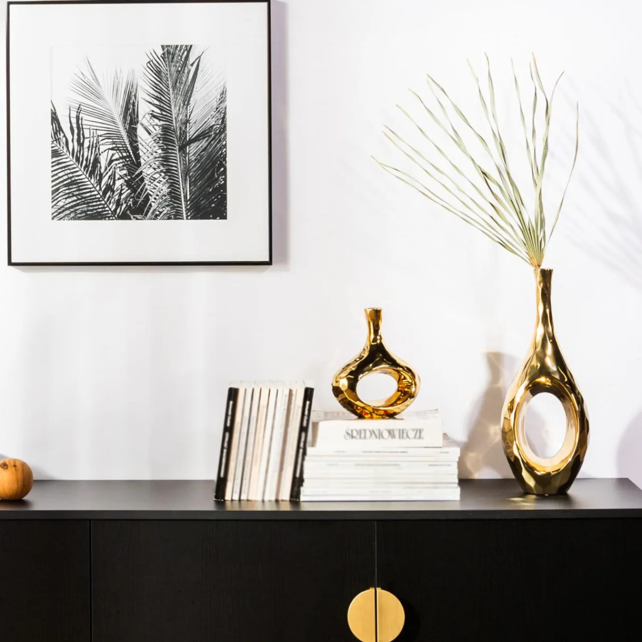 Lubisz geometryczne formy we wnętrzach? Wazon o nieregularnym kształcie stanie się centralnym punktem Twojej aranżacji. Złote wykończenie wpasuje się we wnętrza w stylu glamour i nowoczesne aranżacje. Ustawiony na stole w jadalni, komodzie w salonie, czy parapecie będzie przykuwał uwagę Twoich odwiedzających.