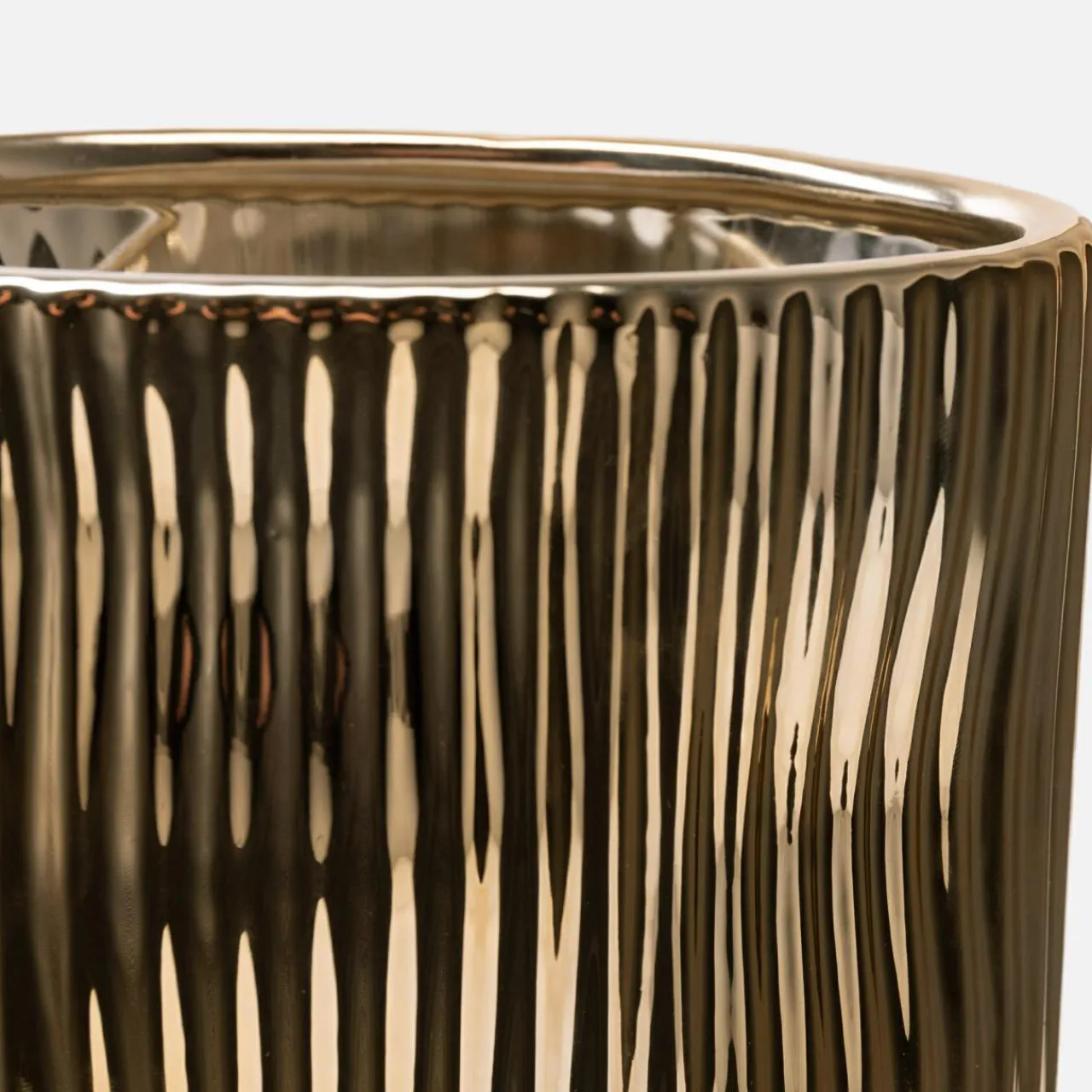 W obecnych trendach aranżacji wnętrz – wazony to nie tylko naczynie na kwiaty, ale również wyjątkowa ozdoba pomieszczenia. Nasz złoty ryflowany wazon pomoże Ci wyeksponować żywe kompozycje kwiatowe, suche trawy, ale również sam w sobie będzie ciekawą dekoracją jadalni, salonu lub przedpokoju.