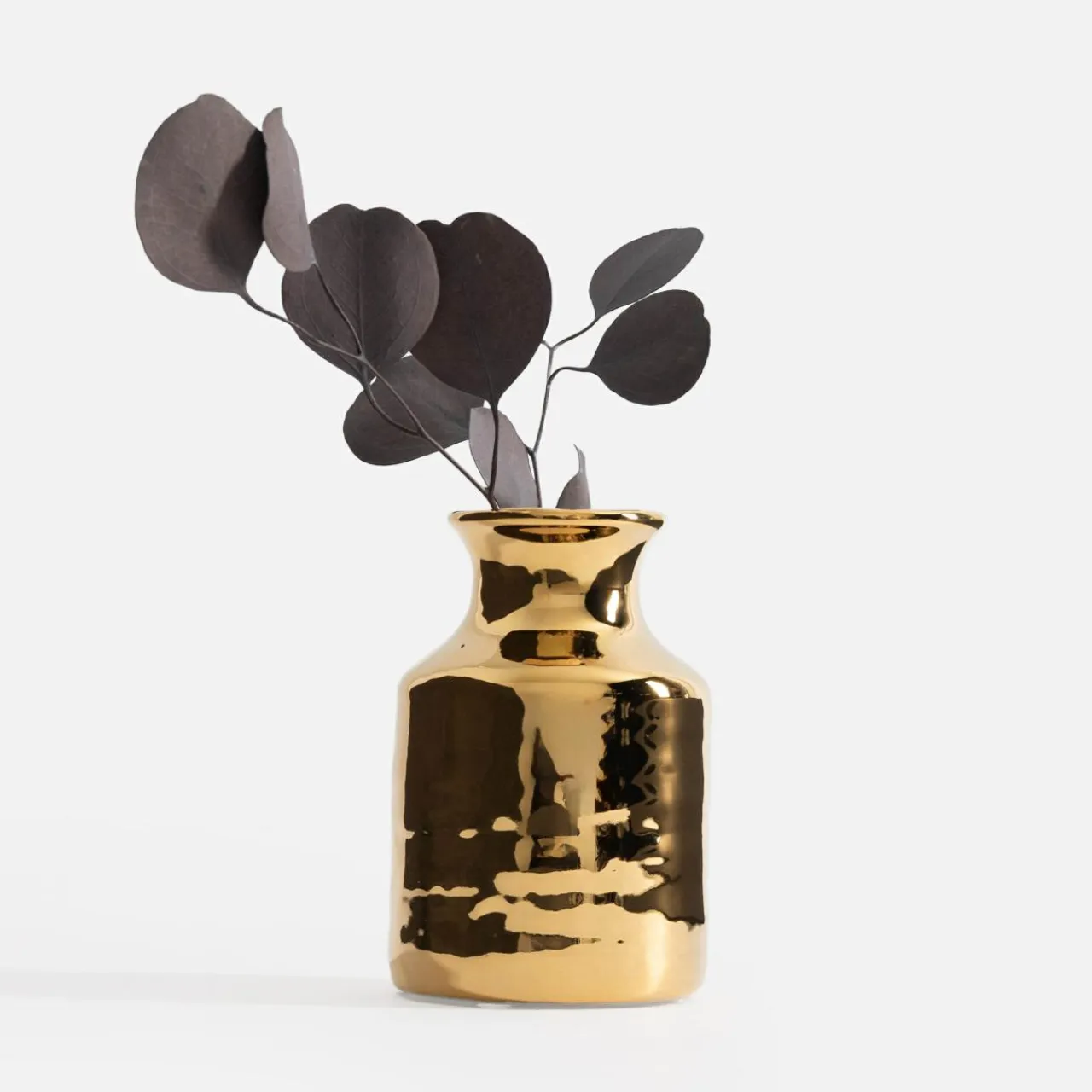 Lubisz subtelne elementy dekoracyjne we wnętrzu? Nasz złoty wazon przypominający butelkę, to doskonały wybór do nowoczesnej przestrzeni w stylu glamour. Złote wykończenie w połysku przykuwa wzrok i staje się centrum każdej aranżacji.