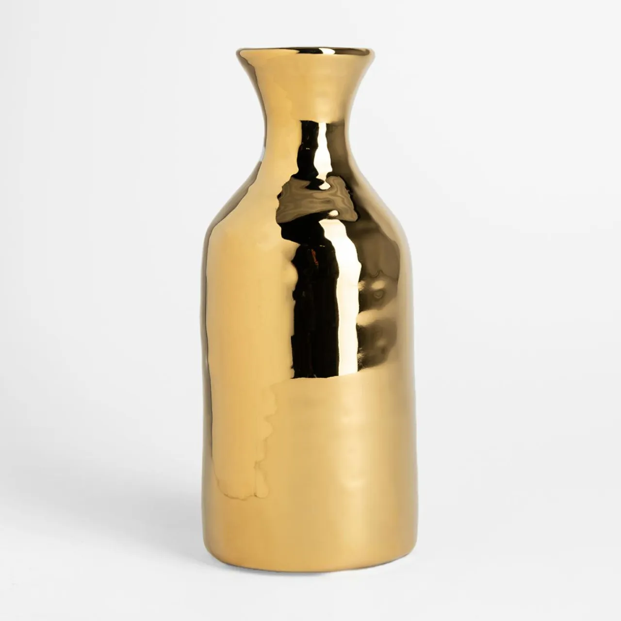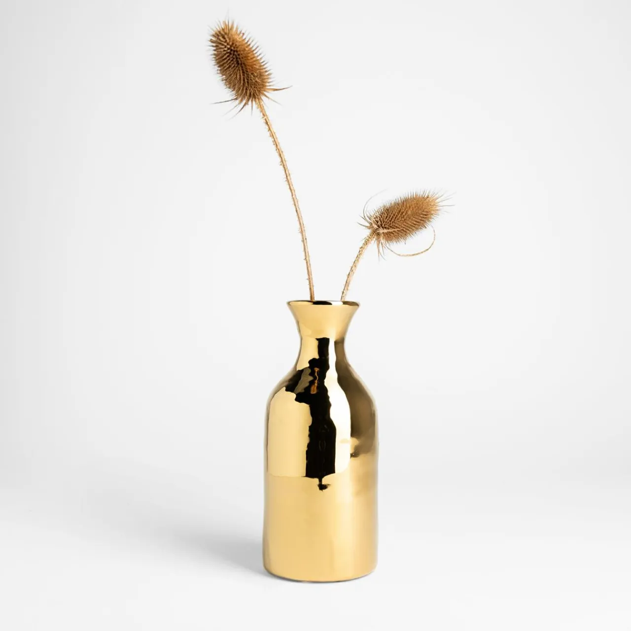 Lubisz subtelne elementy dekoracyjne we wnętrzu? Nasz złoty wazon przypominający butelkę, to doskonały wybór do nowoczesnej przestrzeni w stylu glamour. Złote wykończenie w połysku przykuwa wzrok i staje się centrum każdej aranżacji.