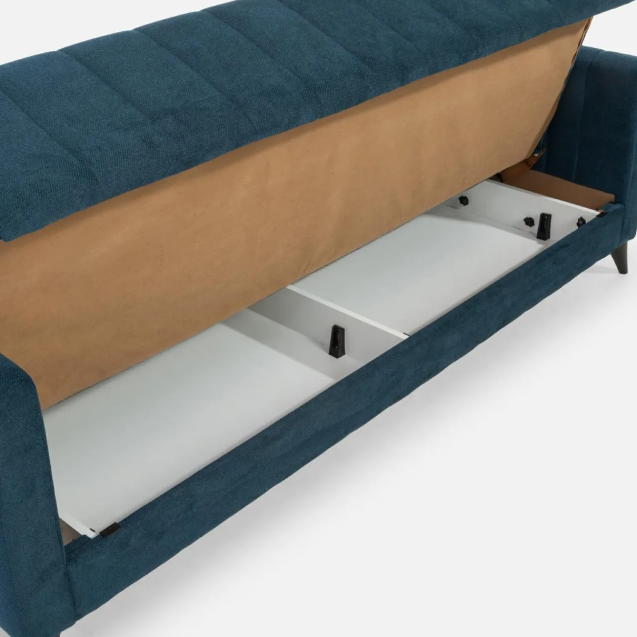 - Pojemnik pod siedziskiem zapewni dodatkowe miejsce na pościel i inne domowe tekstylia.