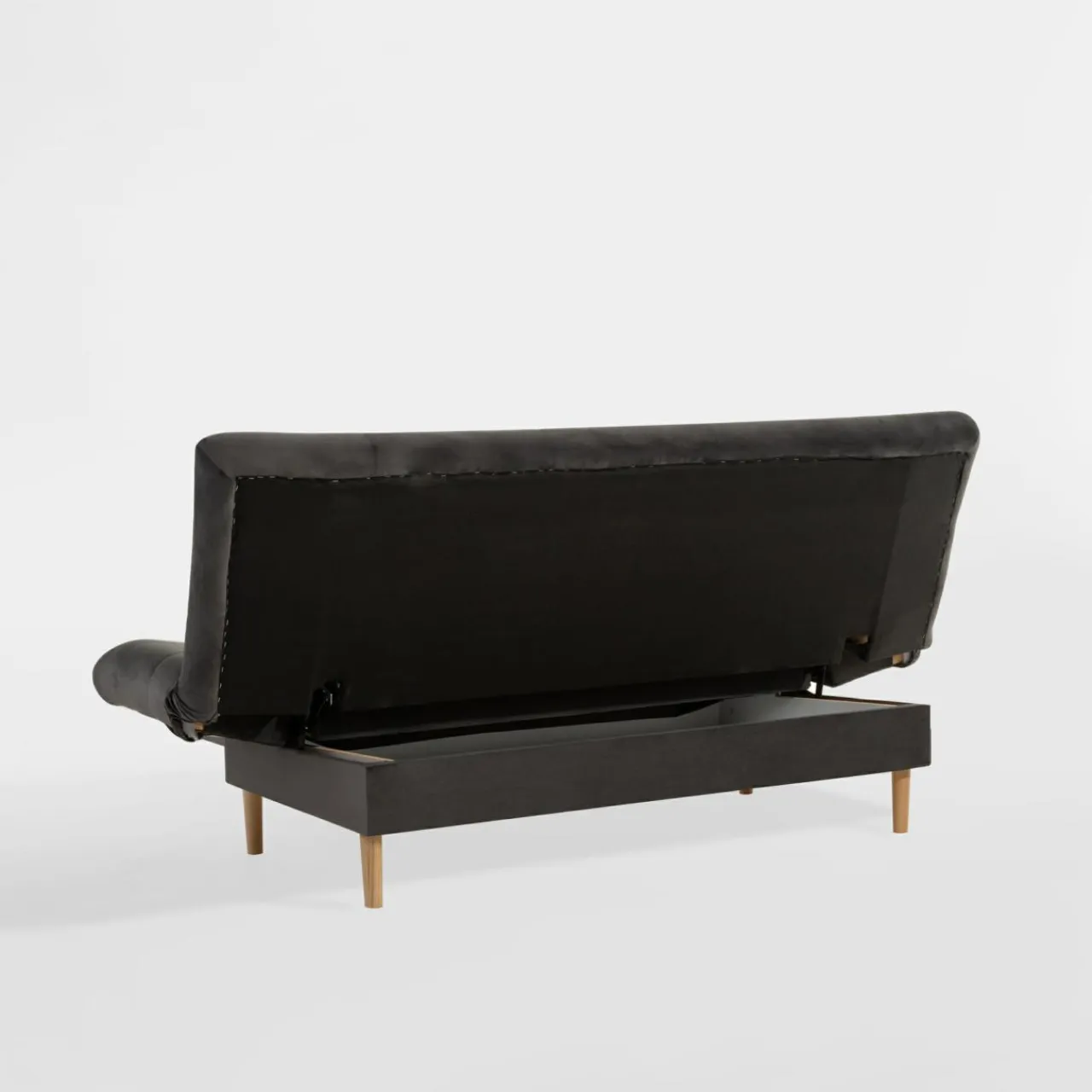 - Pojemnik pod siedziskiem to dodatkowa przestrzeń na pościel i inne domowe tekstylia. Dostęp do niego uzyskasz podczas rozkładania wersalki.