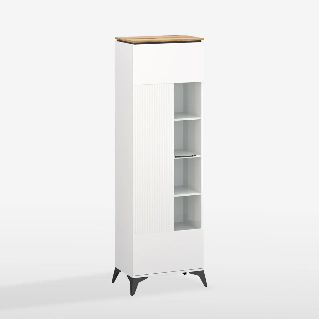 W witrynie VELUTTO pokażesz ulubione filiżanki, dekoracje i pamiątki. Ukryte za szklanym frontem będą bezpieczne przed kurzem i zabrudzeniami.