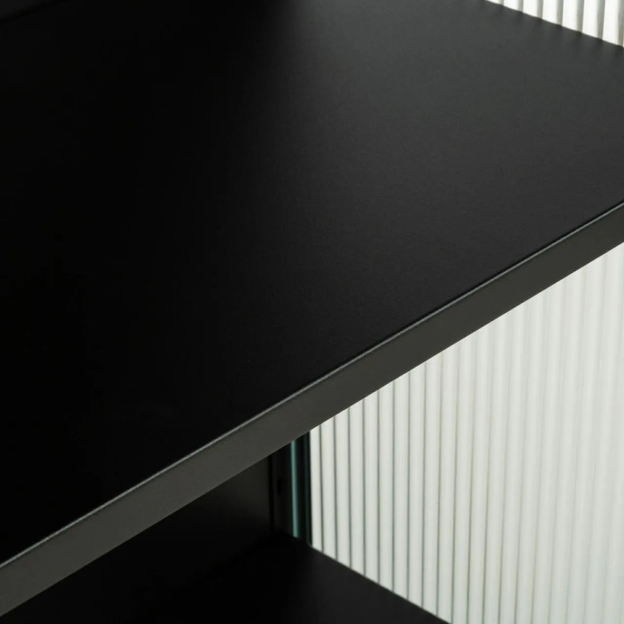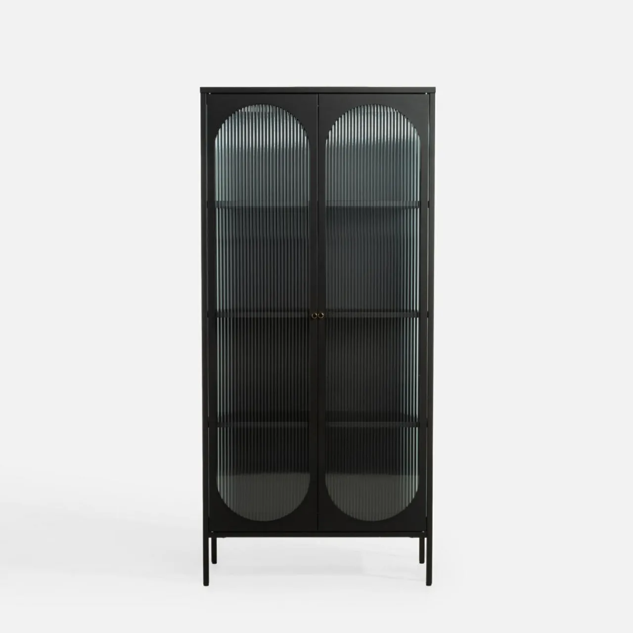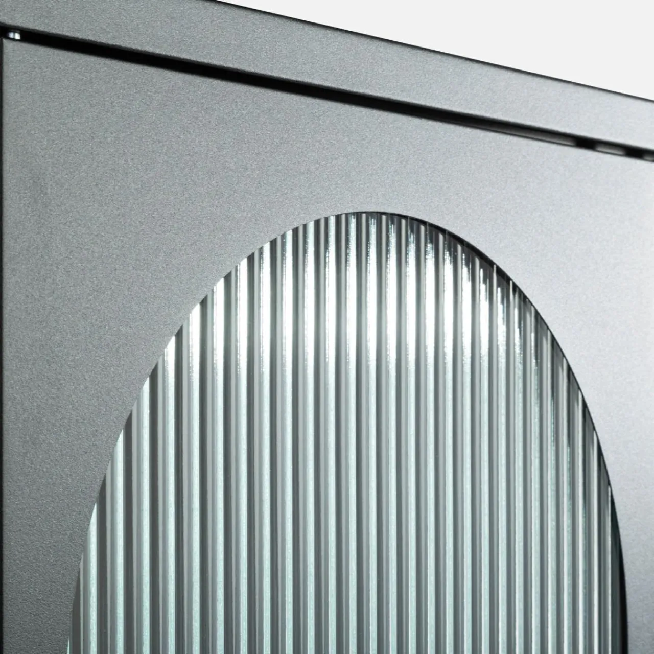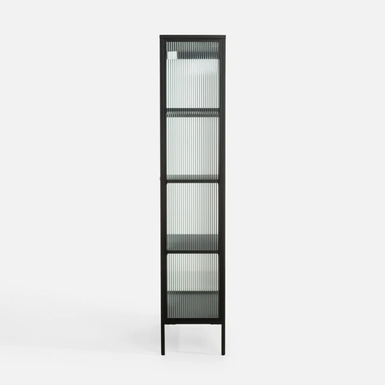 Szukasz do swojego loftowego wnętrza mebli z nutą retro? Witryna BLISSE to połączenie prostej, metalowej konstrukcji z ryflowanym szkłem i zaokrąglonym frontem.