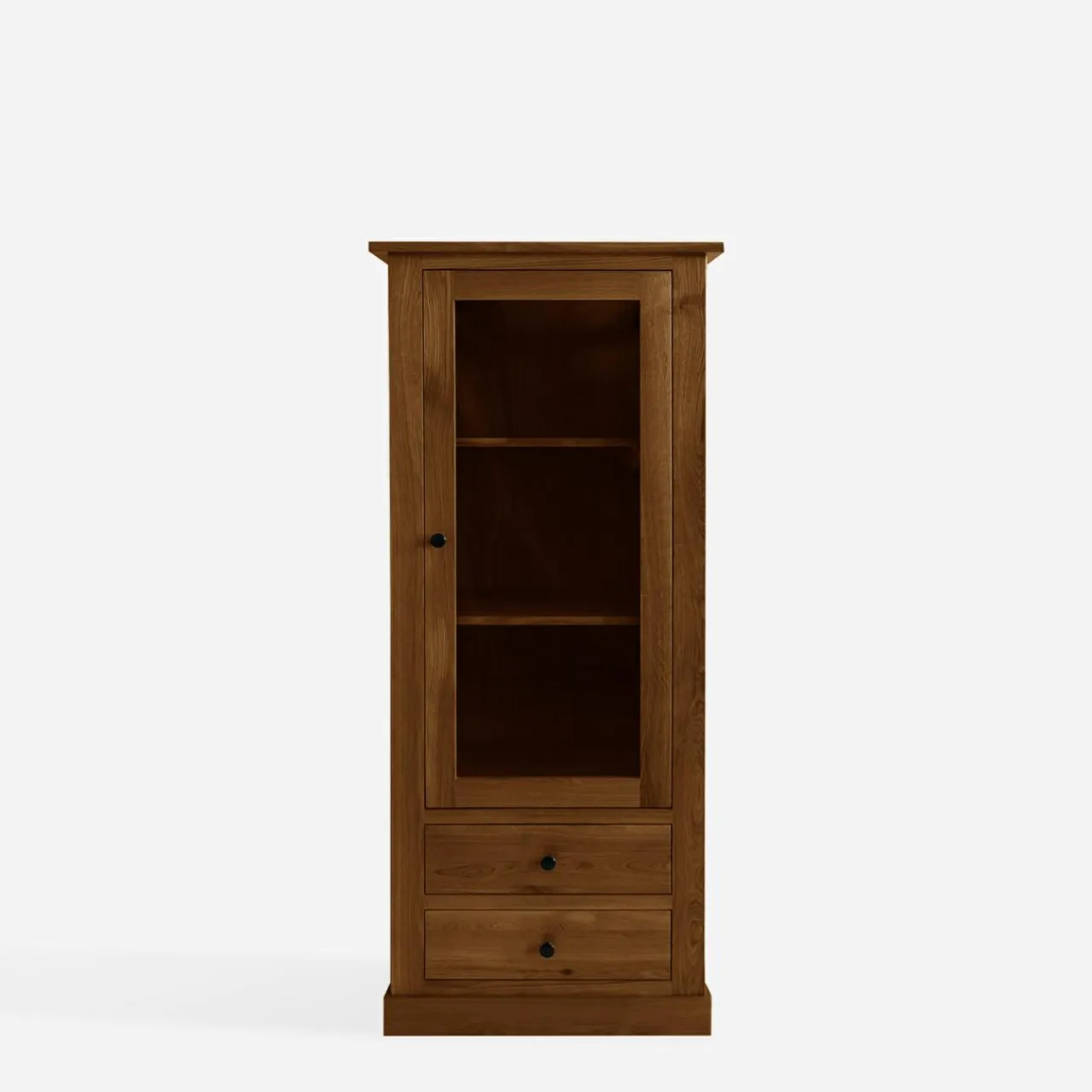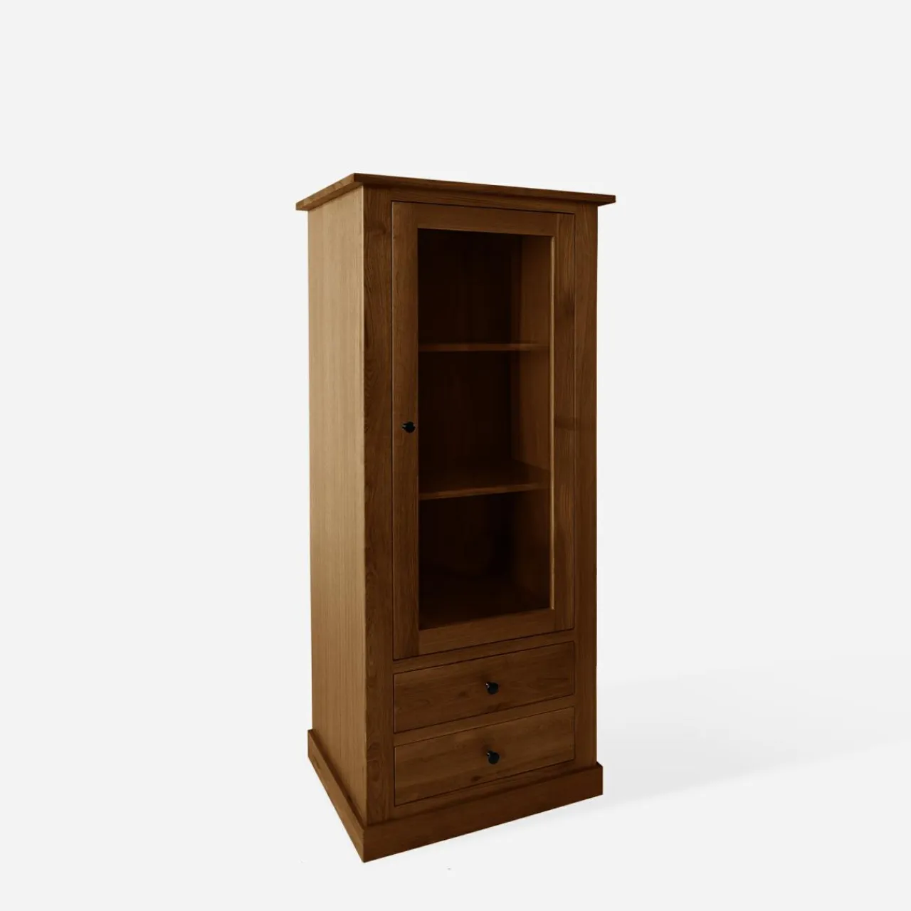 Witryna STELLA – mebel wykonany z litego drewna w kolorze dąb rustykalny. Jej niska wysokość, półki i 2 pojemne szuflady czynią ją idealnym rozwiązaniem do salonu, jadalni lub gabinetu. Prosta forma i klasyczne wykończenie nadają wnętrzu przytulności i ponadczasowego stylu.