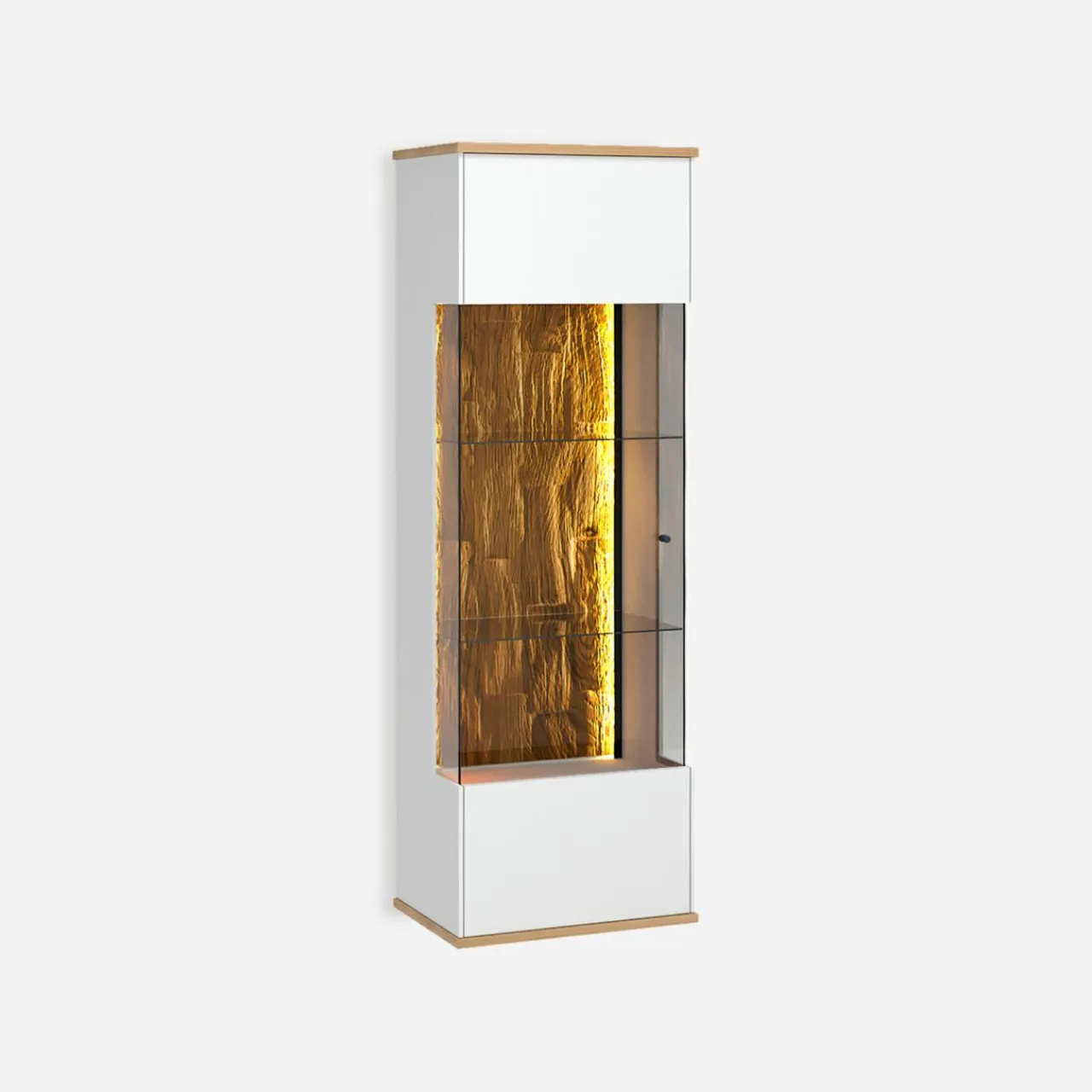 - Zanurz się w grze świateł i faktur — wbudowane oświetlenie LED w ciepłej tonacji wydobywa rysunek dębu, podkreślając ich unikalną strukturę.