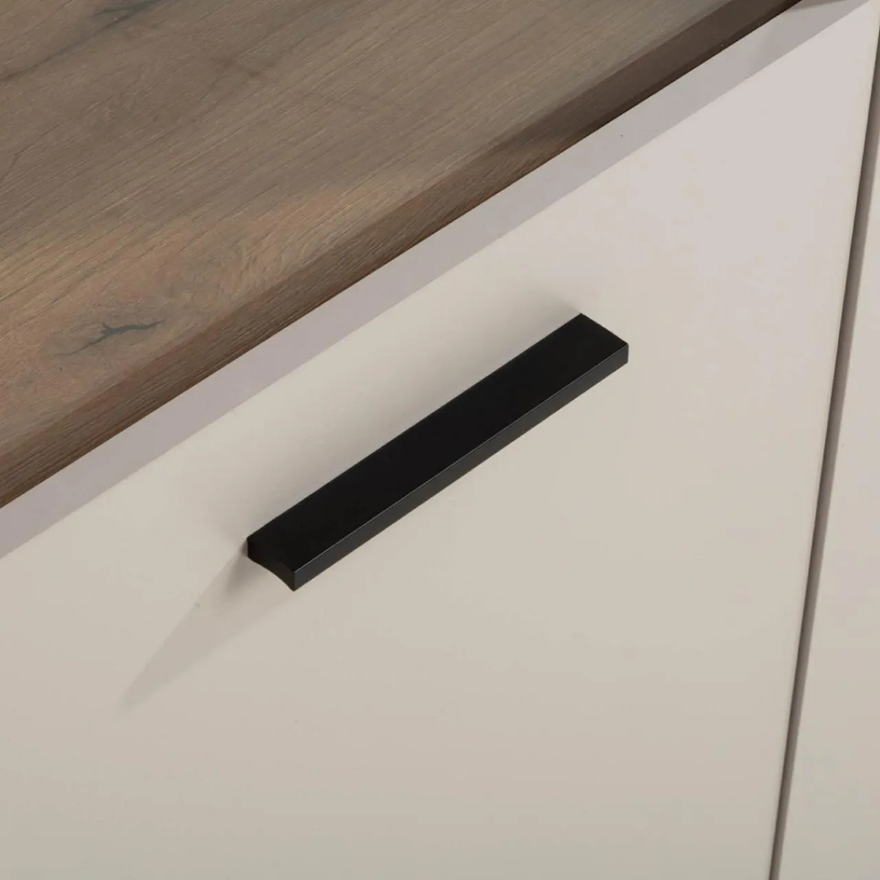 - Wykończenie w kolorze kaszmiru wprowadza elegancję i neutralność. Elementy z rysunkiem dębu evoke nadaje wnętrzu przytulny, naturalny akcent.