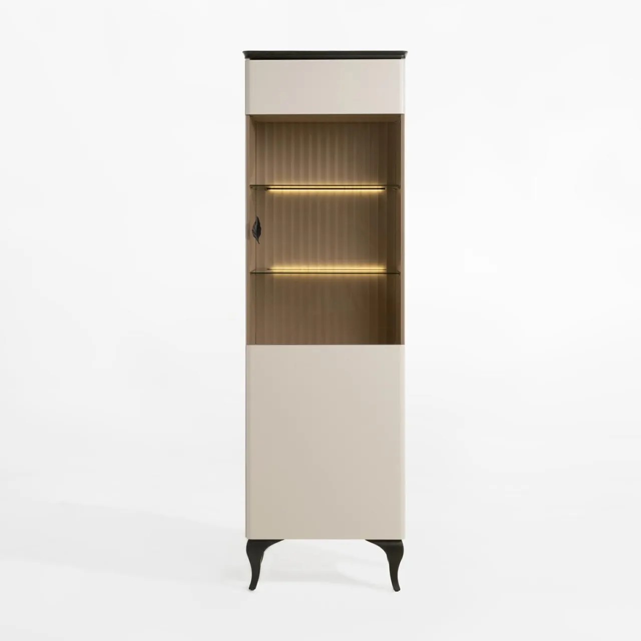 Witryna MADERA pomoże Ci wyeksponować pamiątki, dekoracje i porcelanowe filiżanki nawet w niewielkim pomieszczeniu. Wąska i wysoka pomieści najważniejsze dla Ciebie przedmioty.