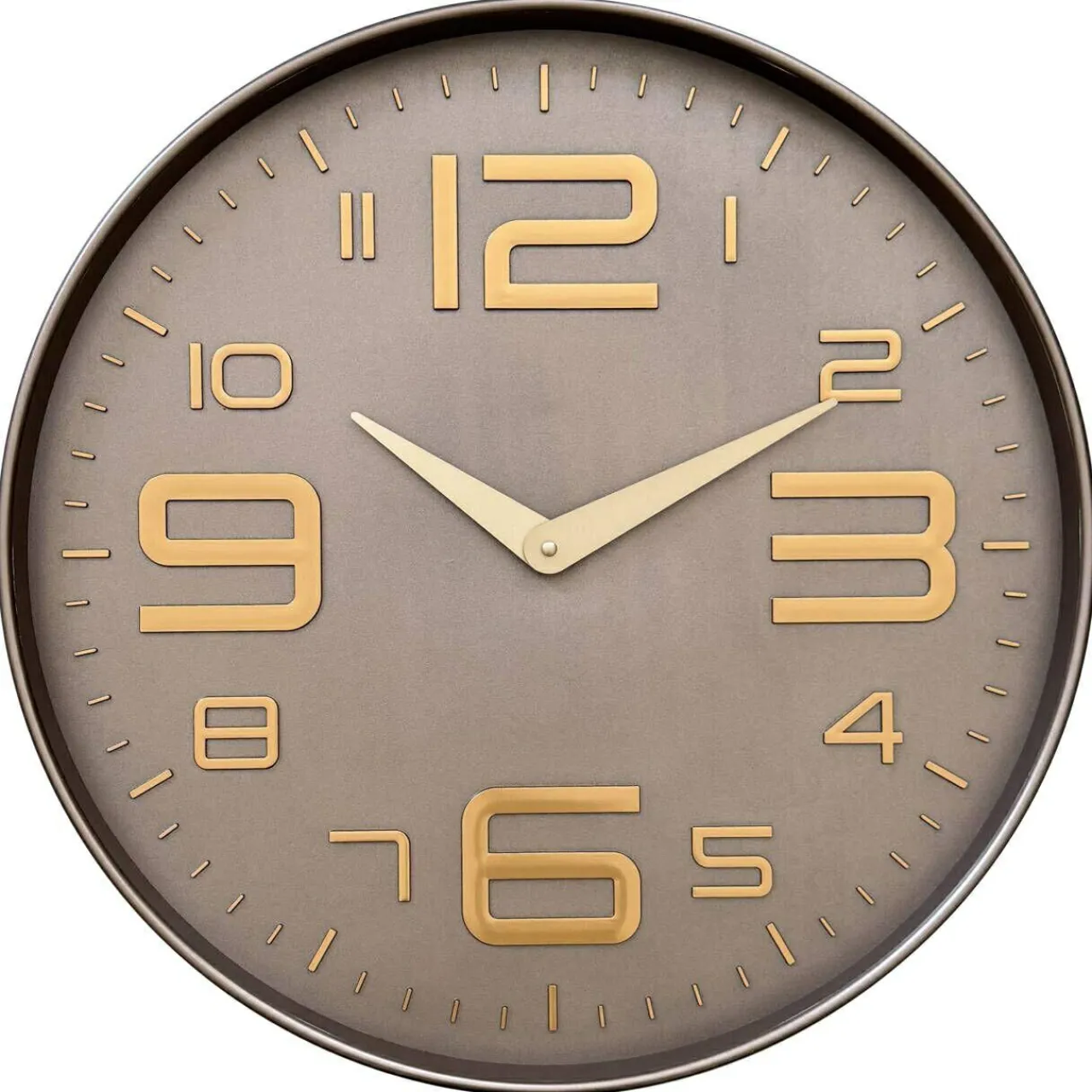Złoty zegar z dużymi cyframi z pewnością przyciągnie uwagę – praktyczna dekoracja uzupełni wystrój nowoczesnego salonu czy sypialni.