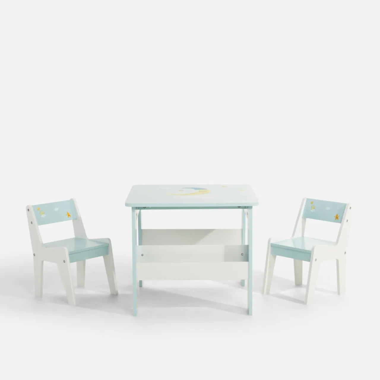 Komplet stolika i 2 krzesełek FLUTERNI stanie się ulubionym miejscem zabaw Twojej pociechy. Eleganckie przyjęcie z herbatką, a może szybkie kolorowanki? Zestaw stworzy przestrzeń, w której maluch rozwinie swoją kreatywność i wyobraźnię.