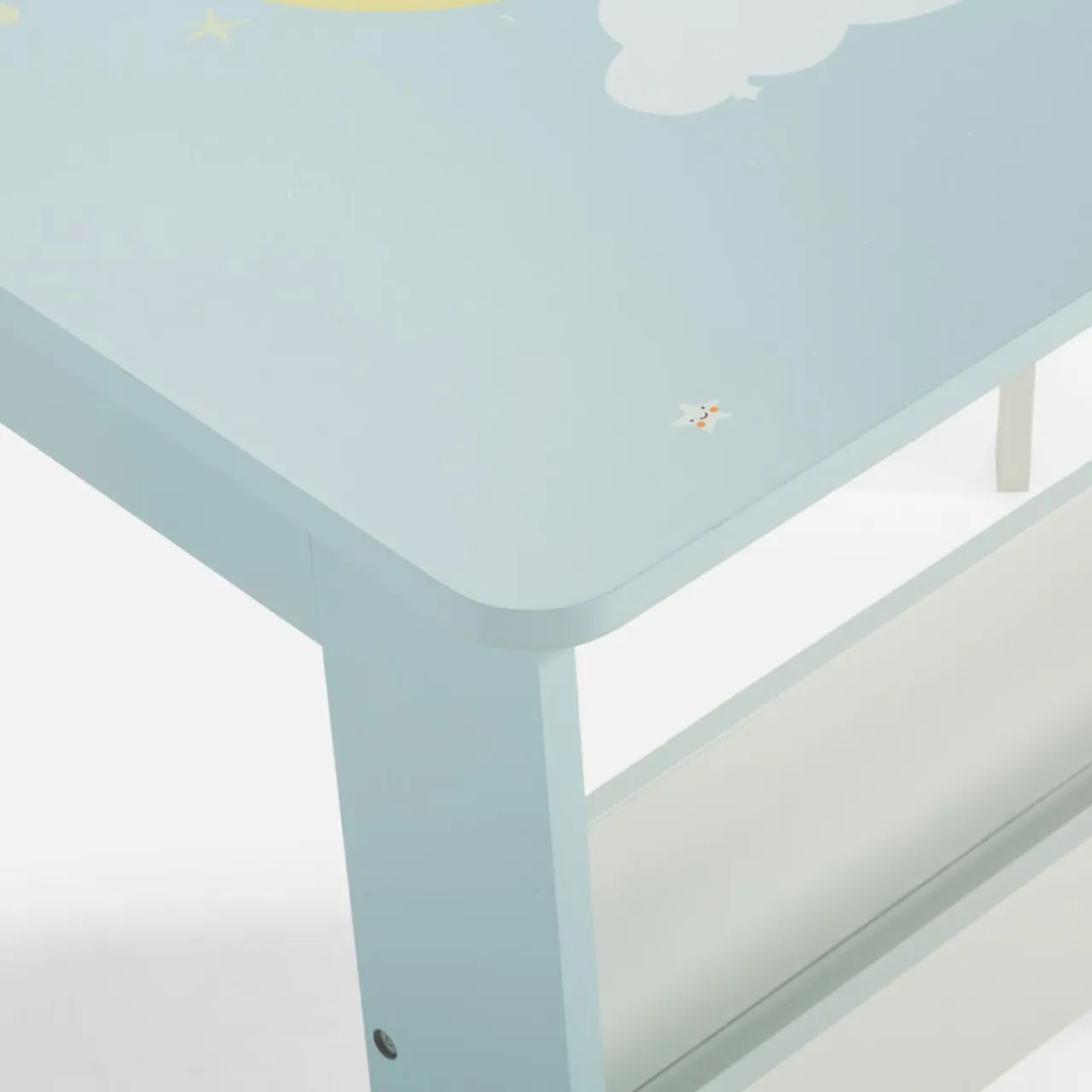 - 2 schowki umieszczone po bokach stolika pozwolą dziecku mieć pod ręką ulubione maskotki.