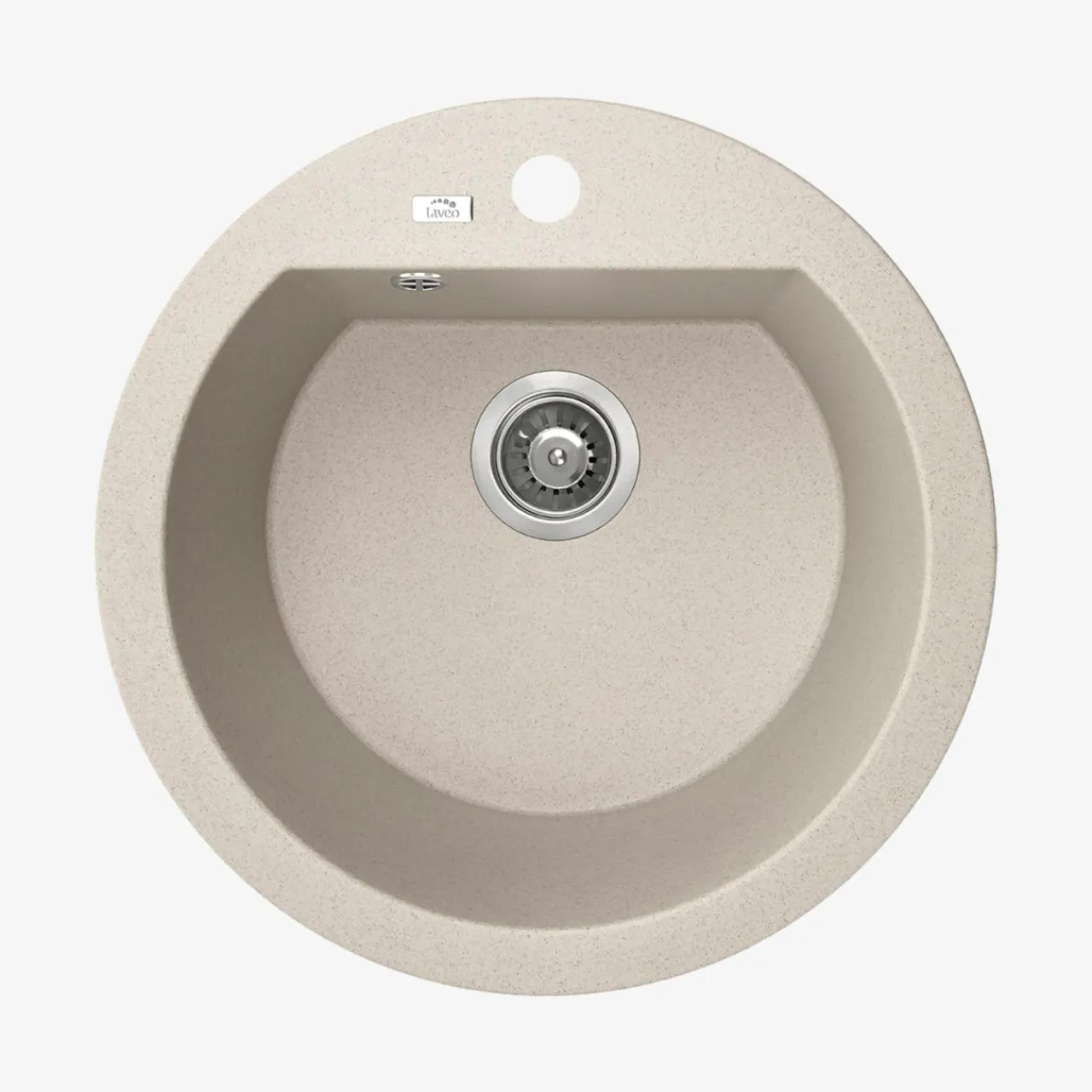 Zlewozmywak LAVEO FLOS o okrągłym kształcie doskonale sprawdzi się w kuchniach z szafkami o minimalnej szerokości 60 cm. Beżowy granitowy kolor nadaje ciepły, elegancki wygląd, który sprawdzi się w nowoczesnych aranżacjach kuchennych.