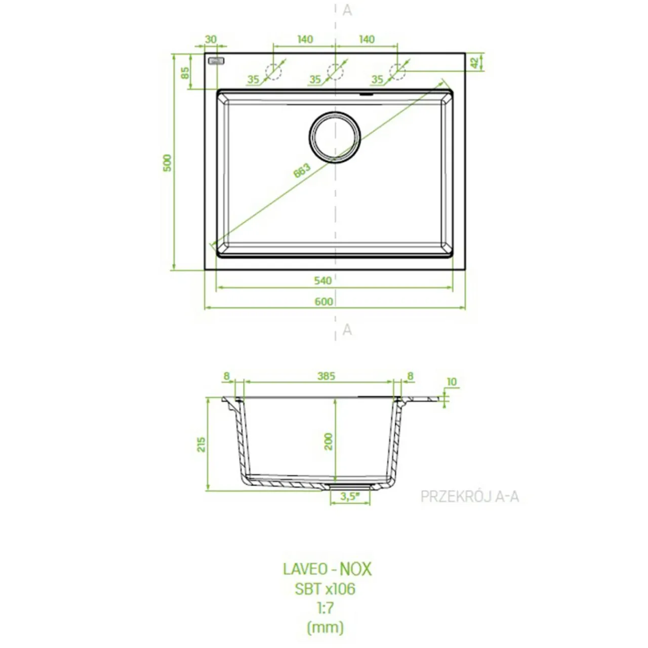 - Wymiary zlewozmywaka: 60×50 cm