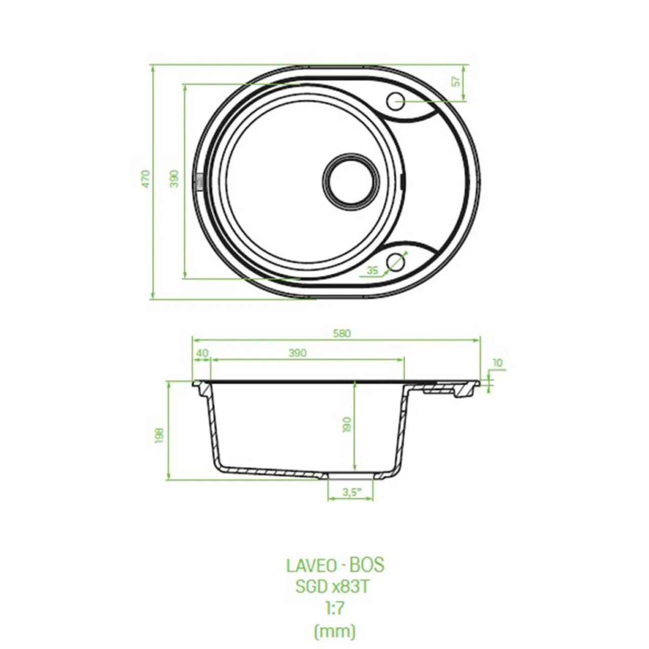 - Średnica odpływu: 3,5 cala