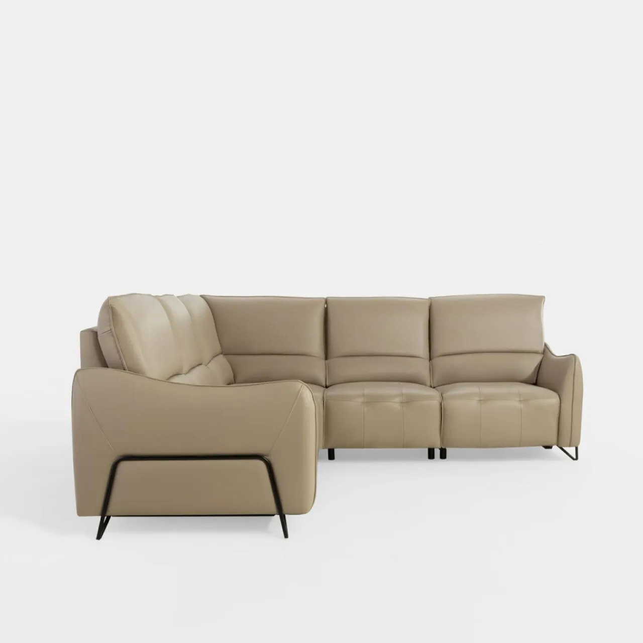 - Narożnik jest wyposażony w fotel z elektrycznie sterowaną funkcją relaksu – wystarczy nacisnąć przycisk, aby się wygodnie odchylić i rozprostować nogi.