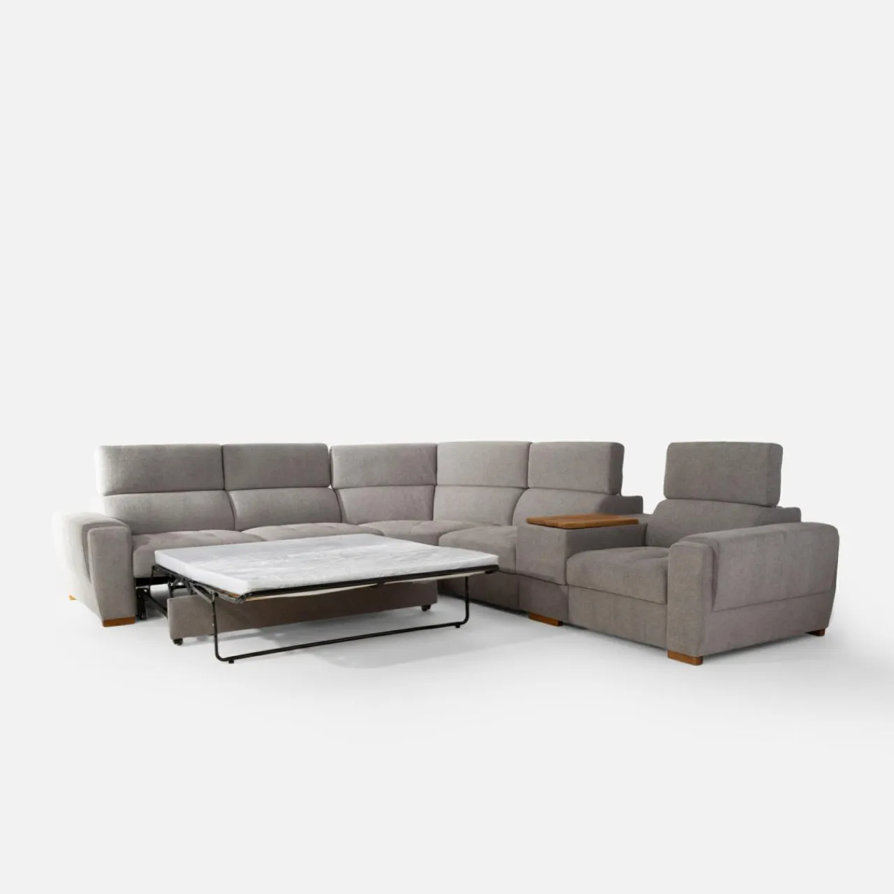 - Narożnik posiada wbudowany fotel z funkcją relaks włączaną elektrycznie – wciśnij guzik, aby wygodnie się odchylić i rozprostować nogi