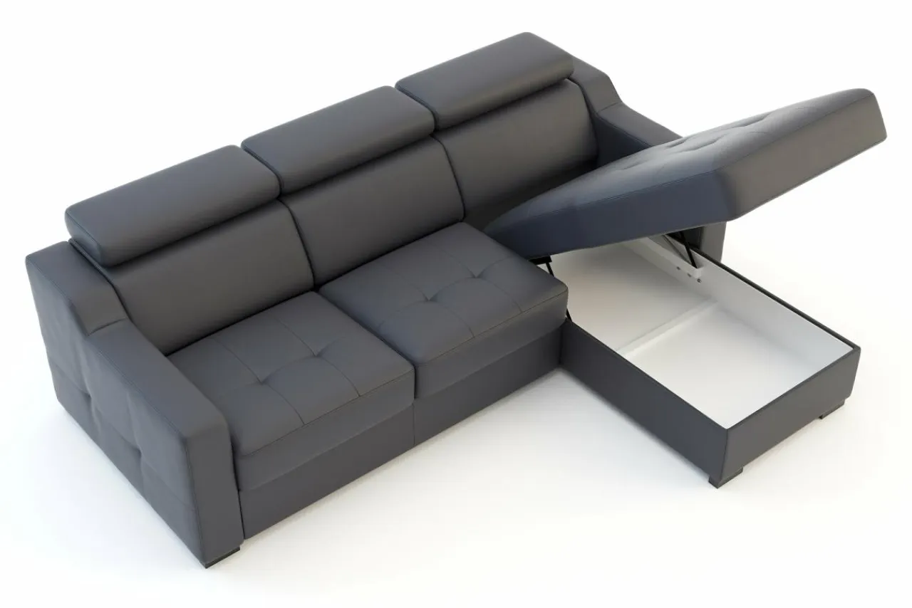 W leżance wbudowany jest pojemnik. Możesz w nim przechowywać pościel, koce lub inne tekstylia.