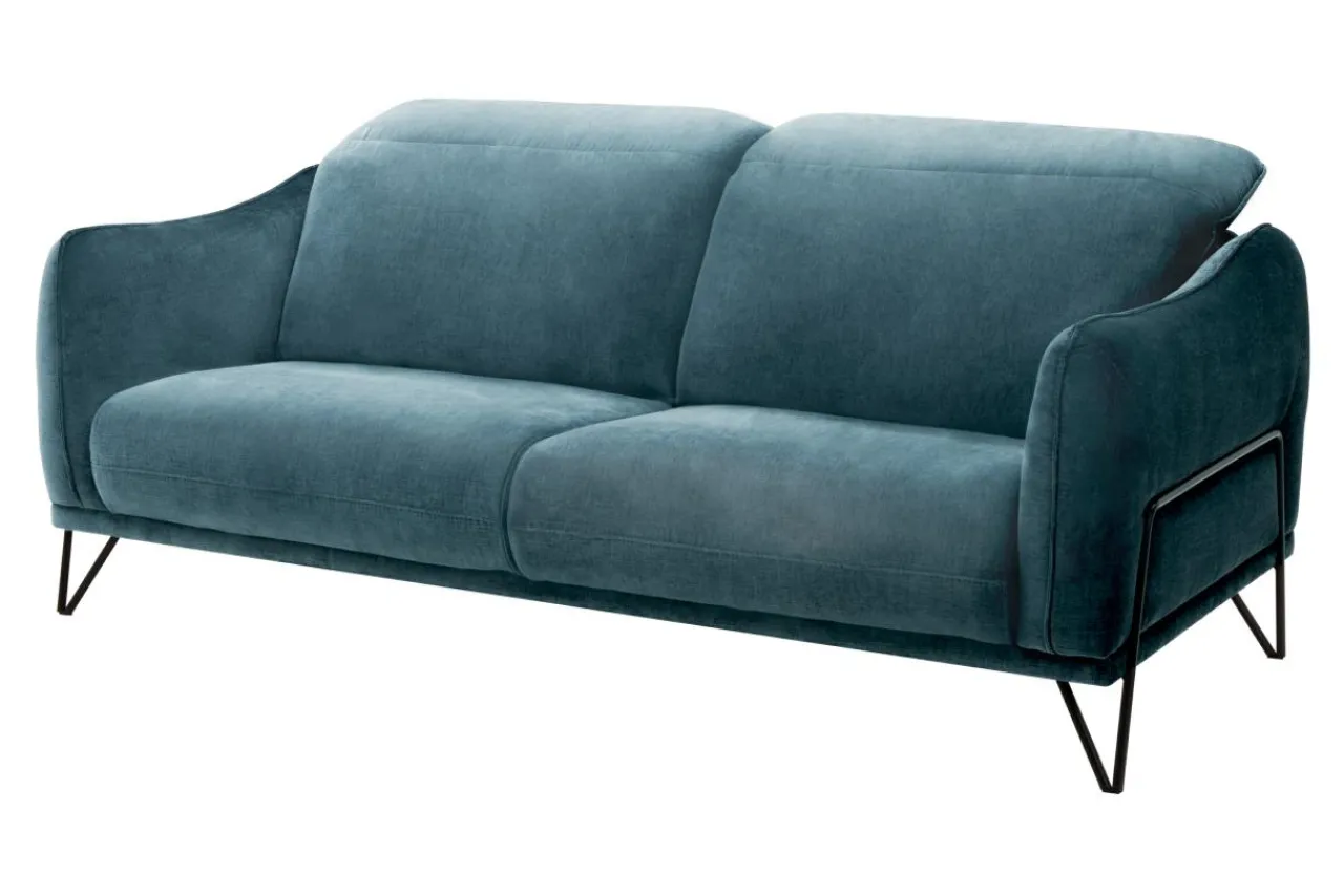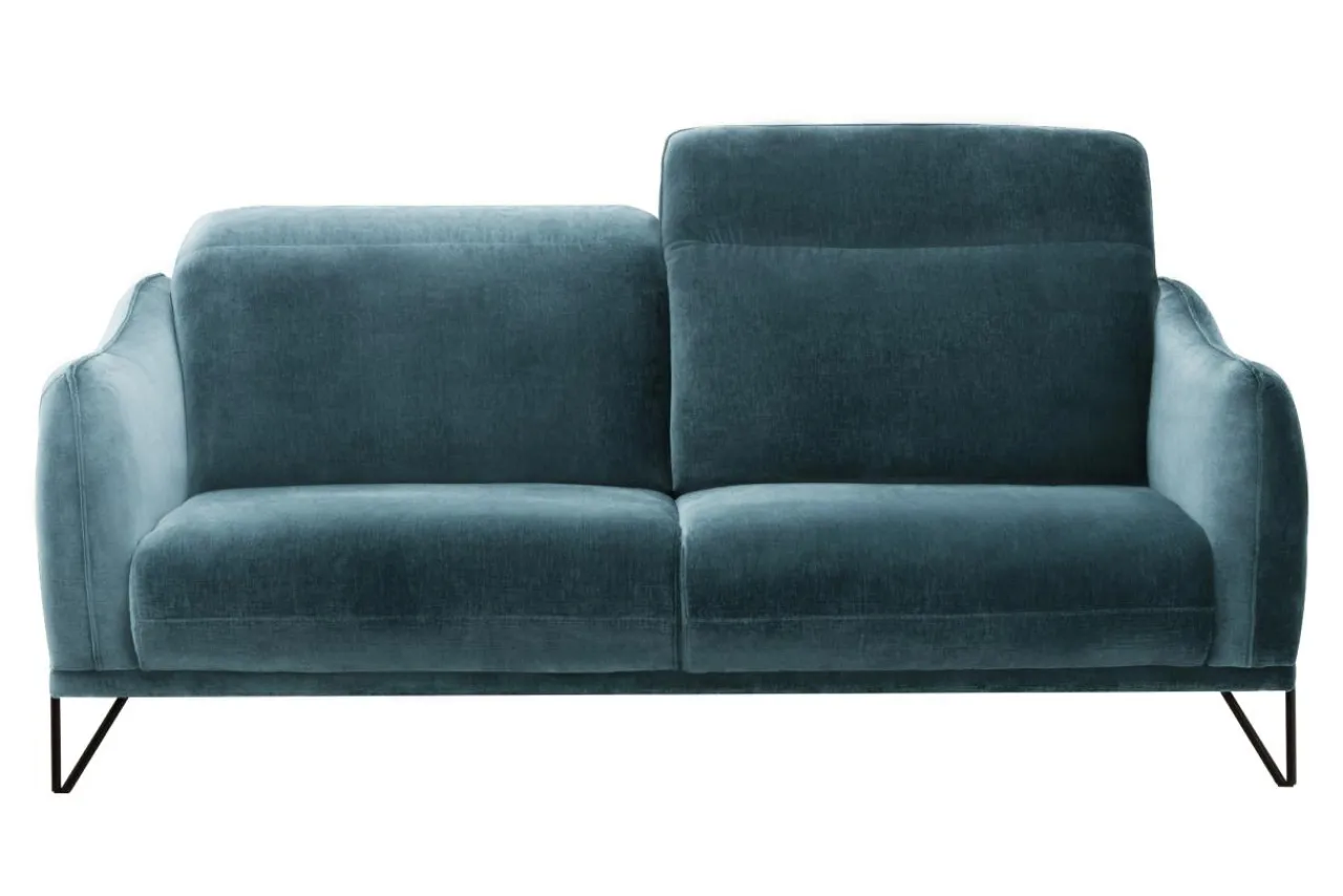 Wysokie metalowe nóżki i obłe kształty sprawiają, że sofa wpasowuje się w aktualnie obowiązujące trendy.