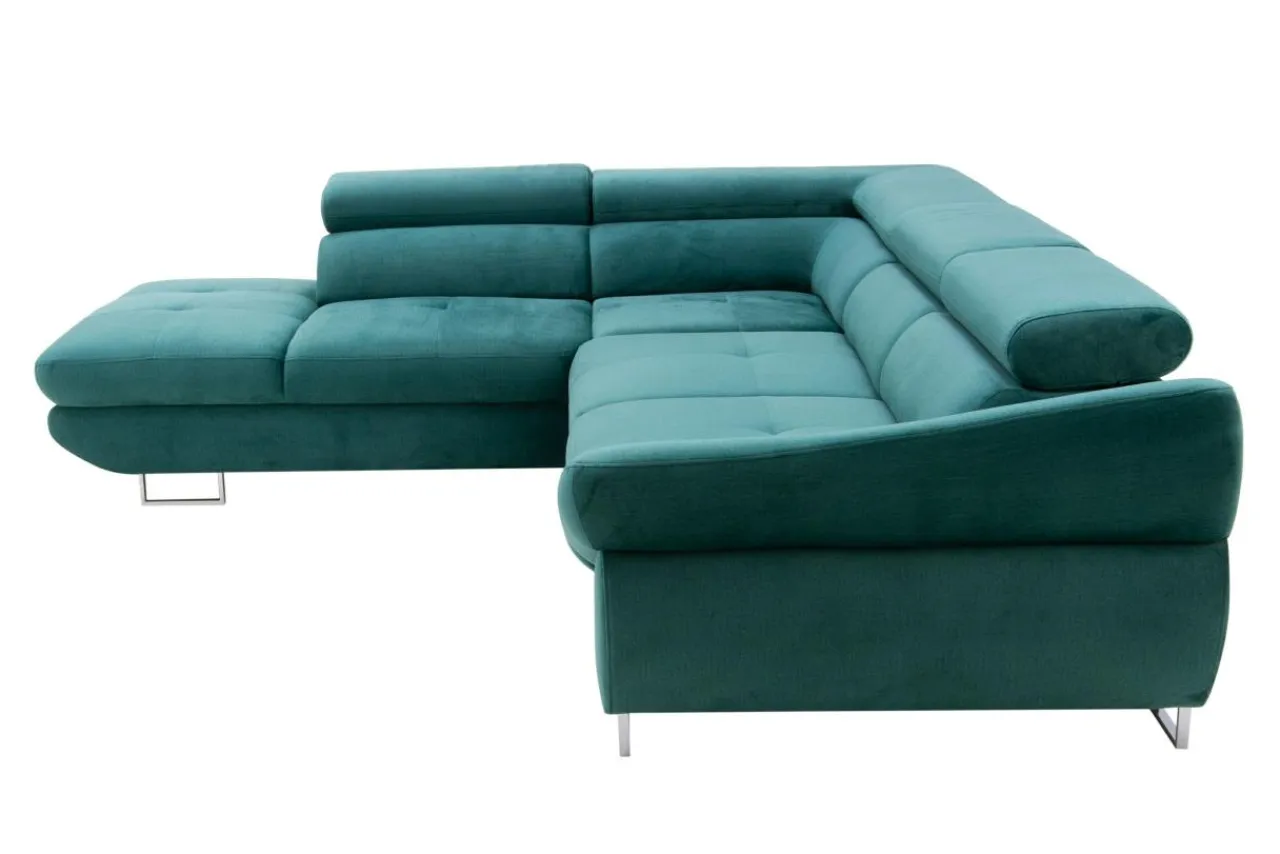 Metalowe nóżki podkreślają nowoczesny charakter narożnika.