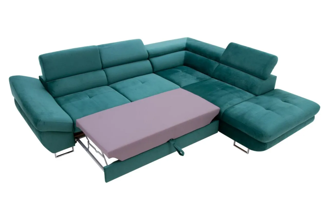 Narożnik możesz rozłożyć bez konieczności odsuwania go od ściany. Wystarczy wysunąć element spod siedziska, by stworzyć przestrzeń do przenocowania gościa.