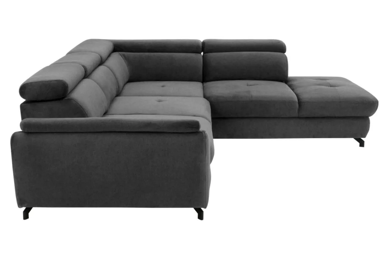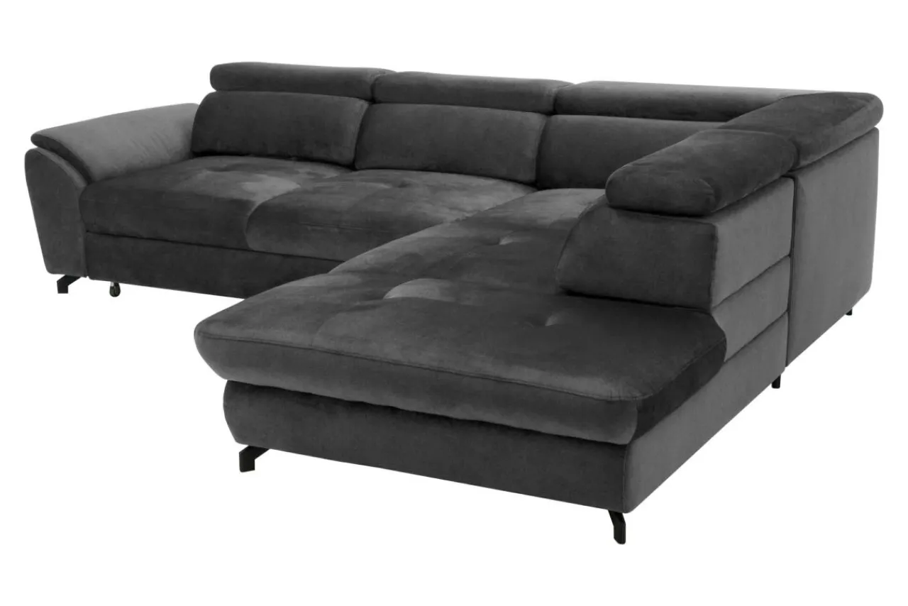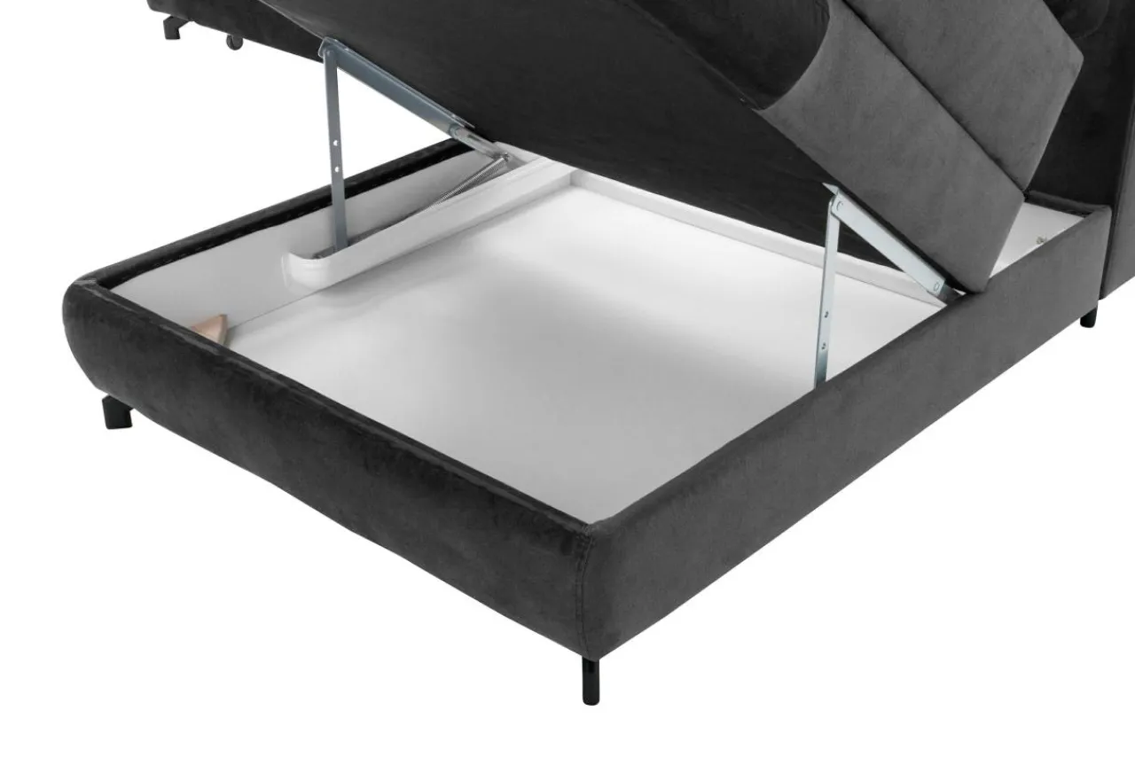 - Narożnik MAROLA ustawiono na eleganckich nóżkach wykonanych z metalu i malowanych na czarno.