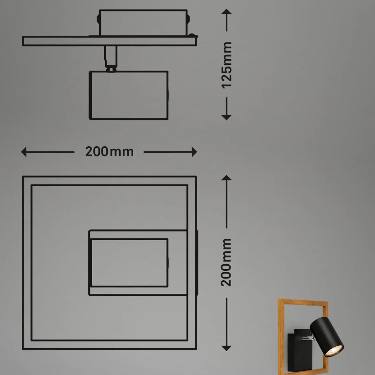 Kinkiet FREY posiada oprawę dla 1 żarówkę LED typu GU10 o mocy maksymalnej 9W.
