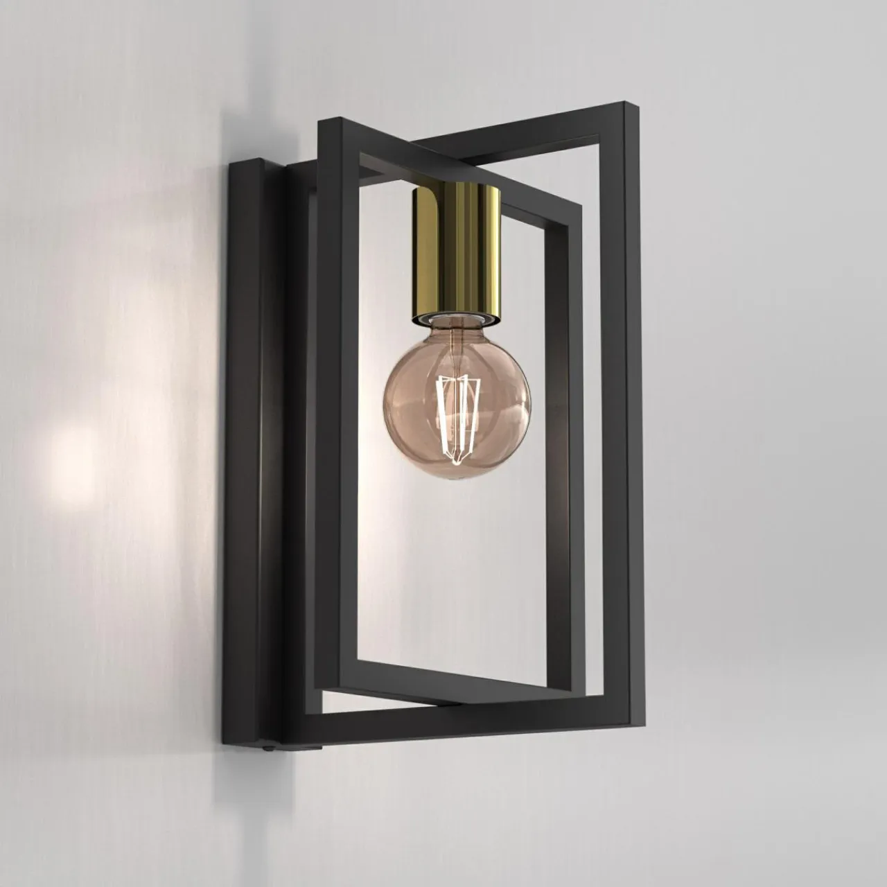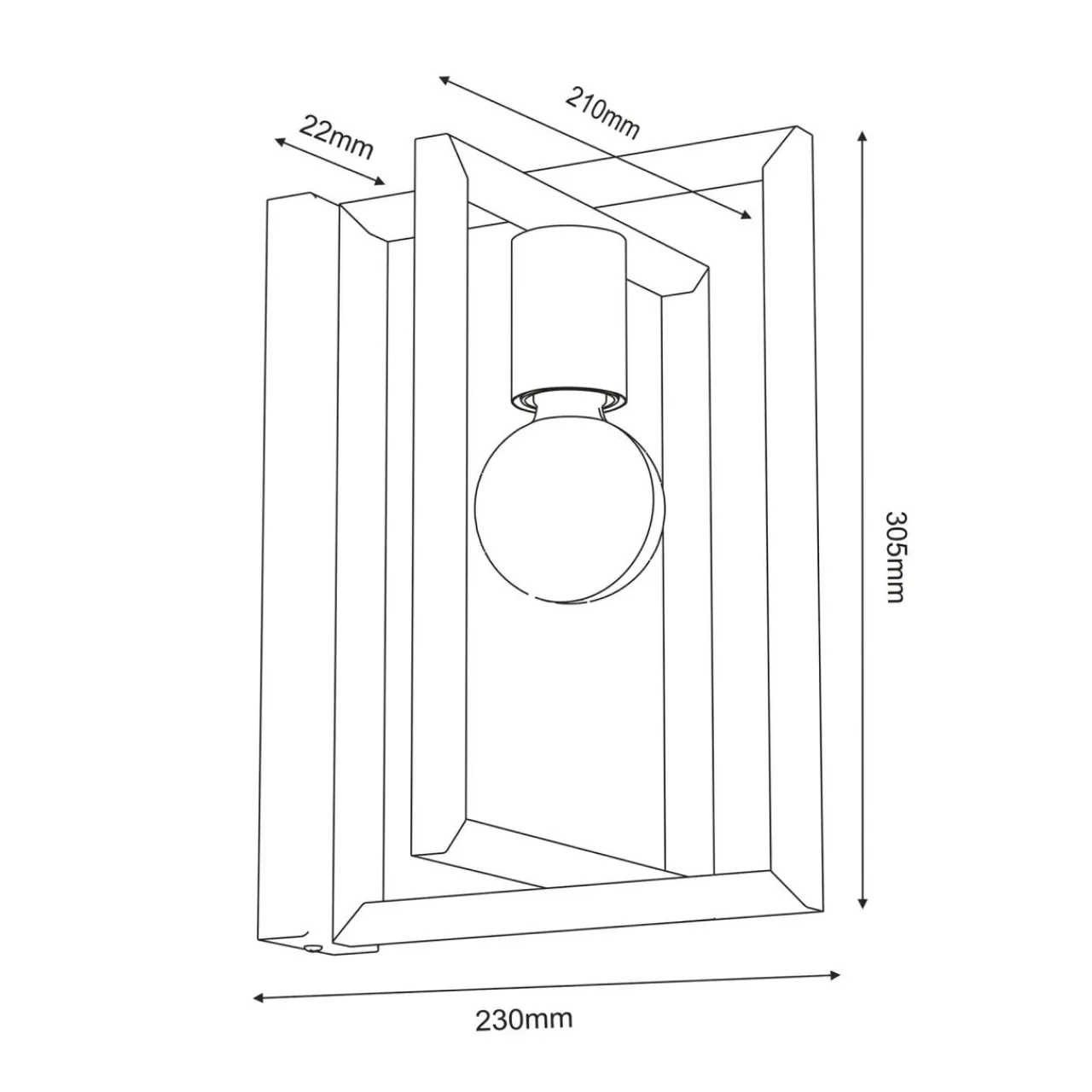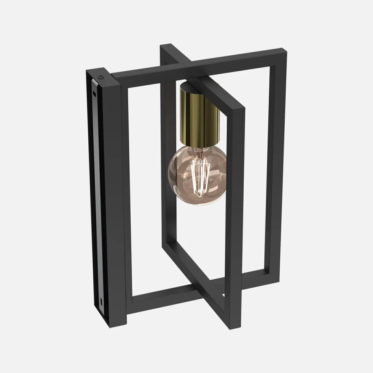 Żarówka została osadzona pomiędzy krzyżującymi się ramkami w czarnym kolorze, co podkreśla prostotę wzoru, jednocześnie pozwalając na eksperymenty z dekoracyjnym kształtem żarówki.