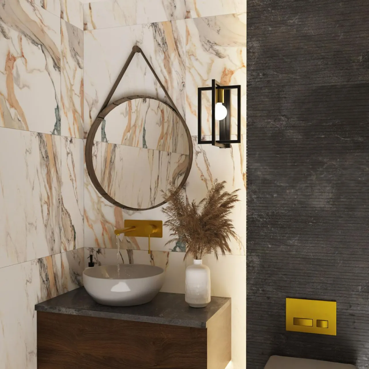 - Dominującym kolorem kinkietu BELFORT jest czerń, jedynie oprawa żarówki ma błyszczący, złoty kolor.