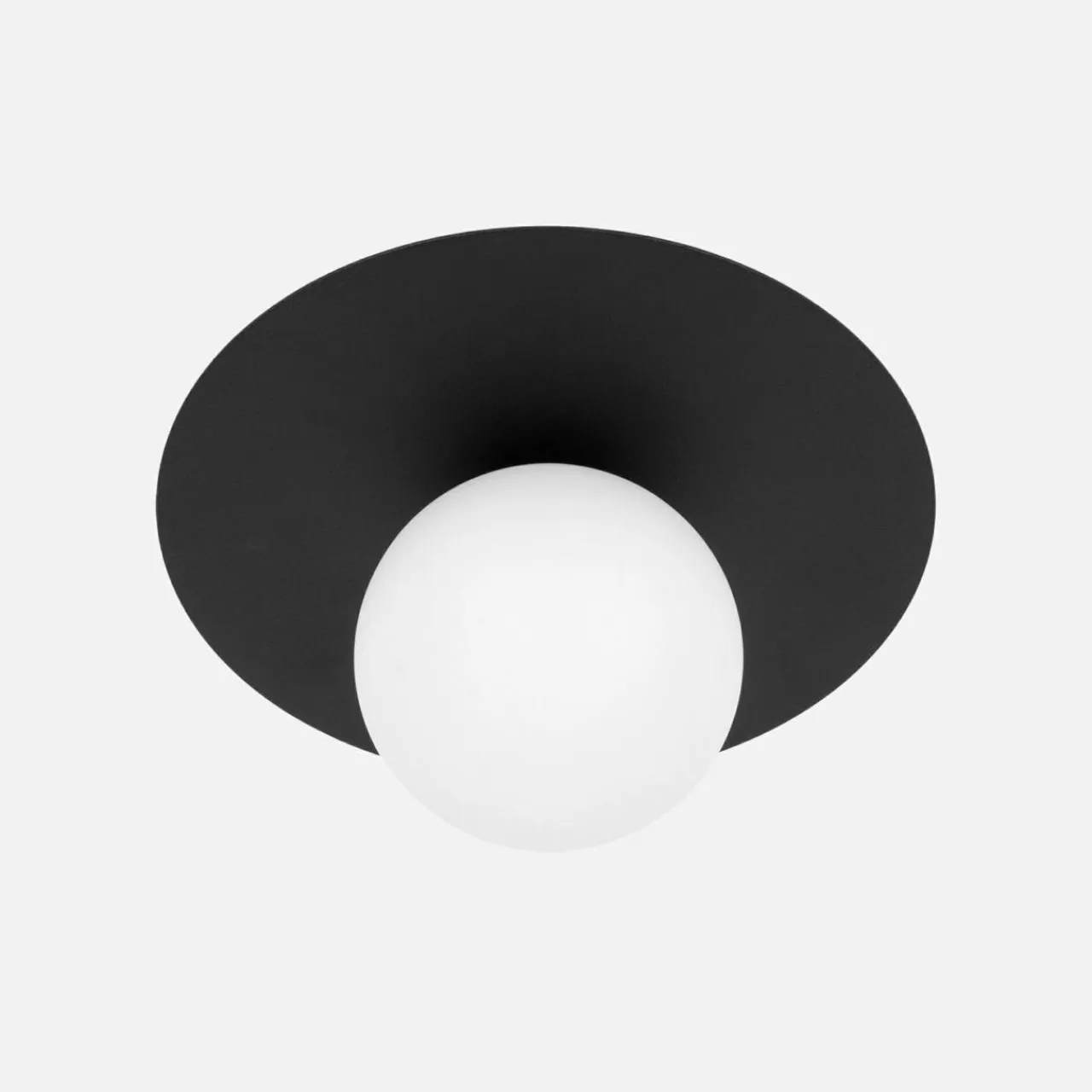 Jej baza w czarnym, matowym kolorze została dopełniona przez nieprzejrzysty kulisty klosz w odcieniu ciepłej bieli.
