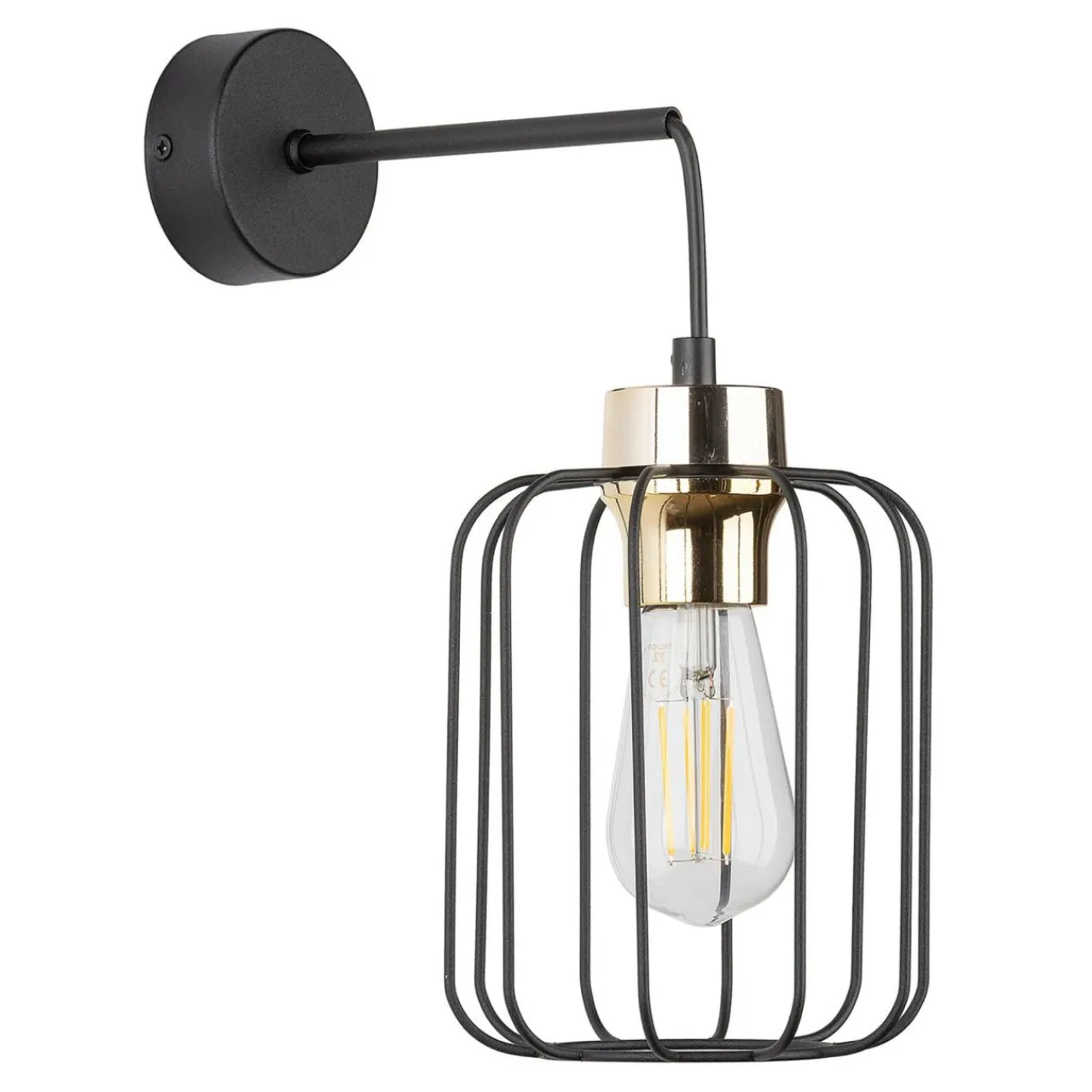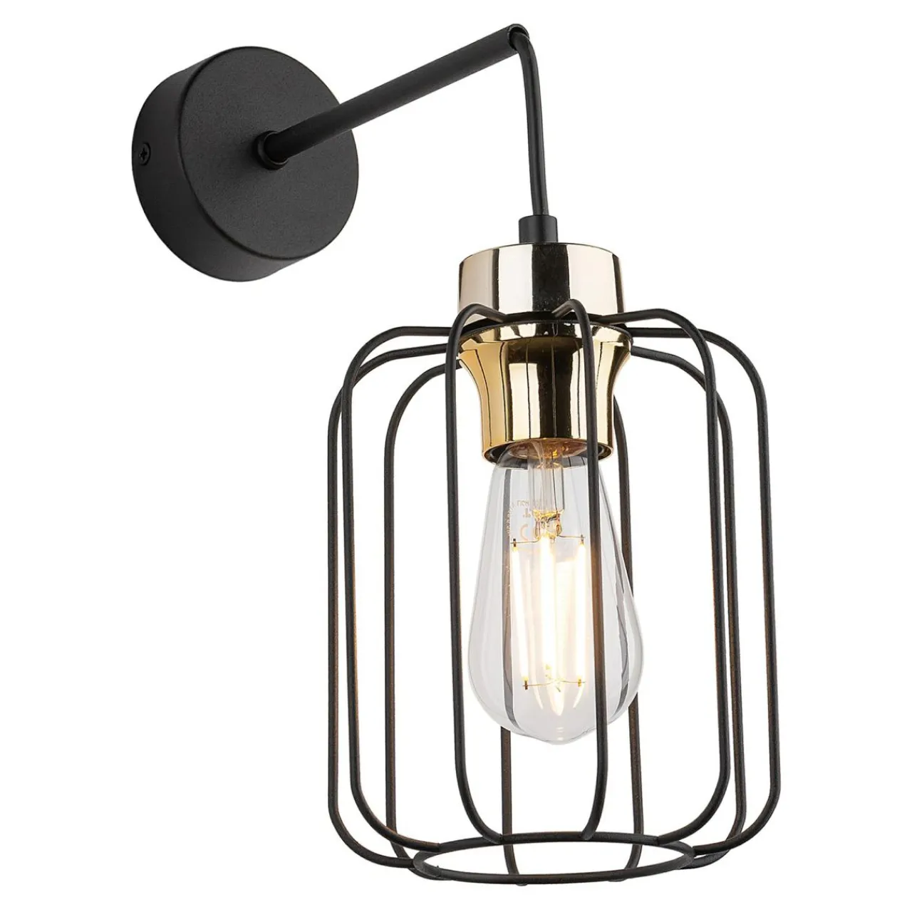 Klosz kinkietu cechuje prosta, metalowa budowa o geometrycznym kształcie, która daje duże możliwości pod kątem pokazania kształtu i koloru ozdobnych żarówek.